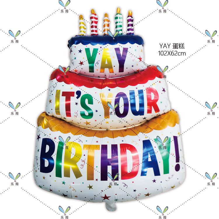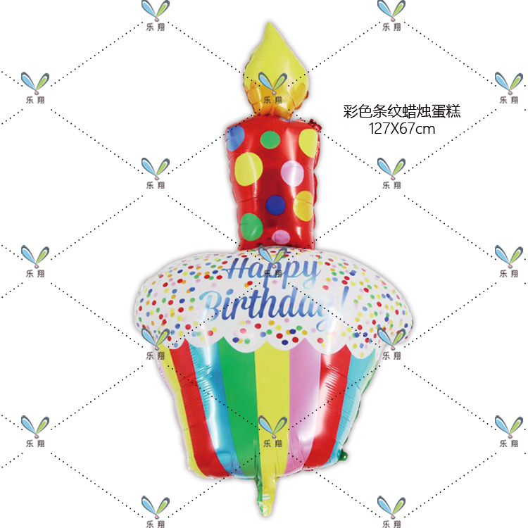 新款生日蜡烛蛋糕YAY蛋糕彩色条纹 18寸许愿铝膜气球派对装饰布置