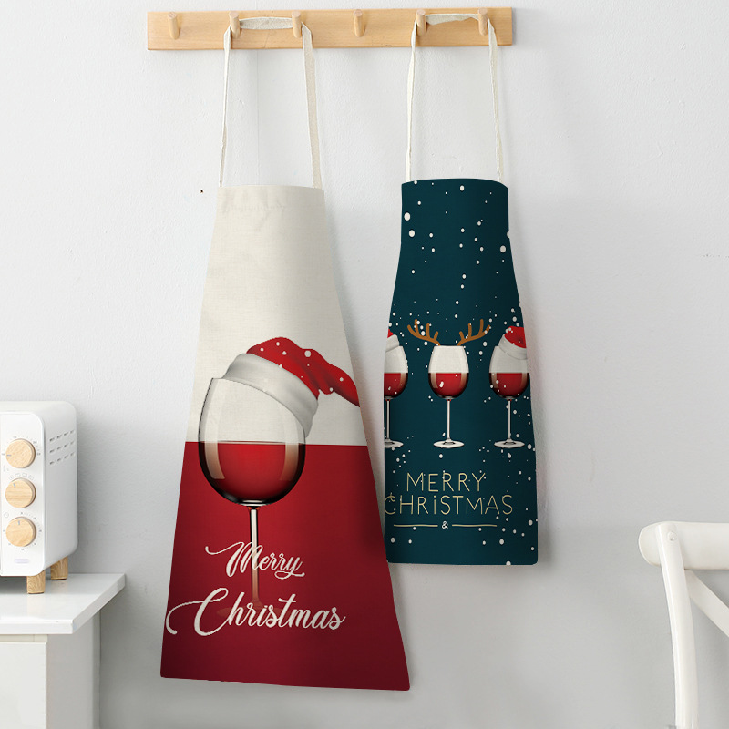 2025新款跨境防水隔污工作服批发印字圣诞红酒杯餐厅厨房服务员