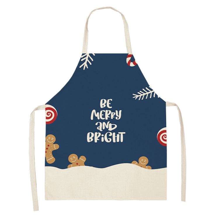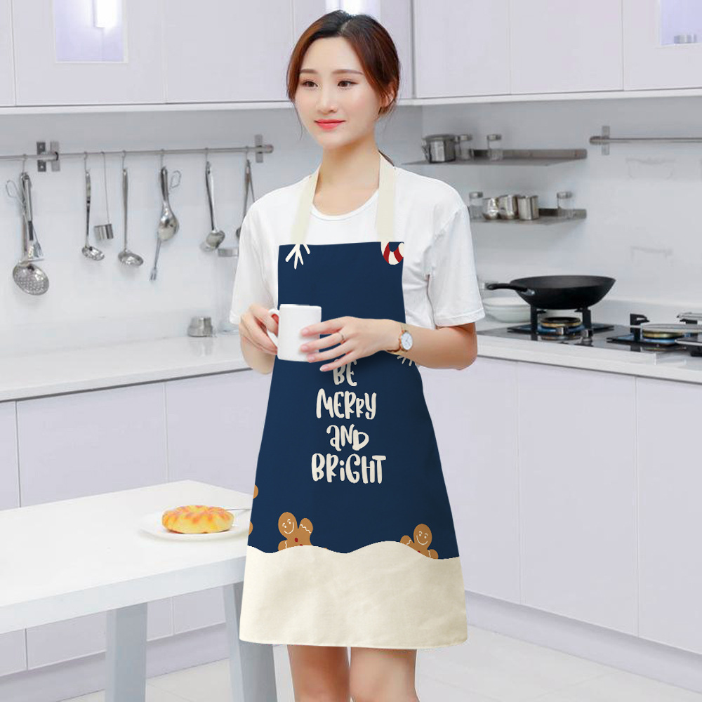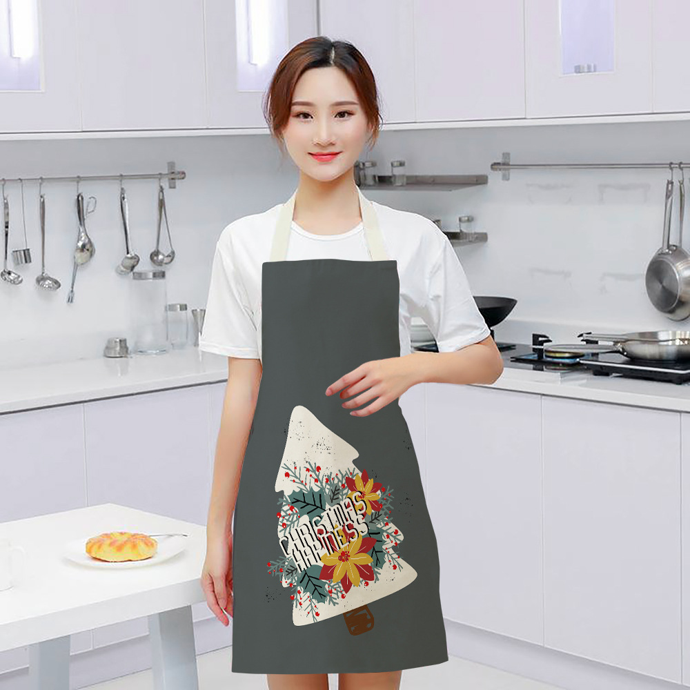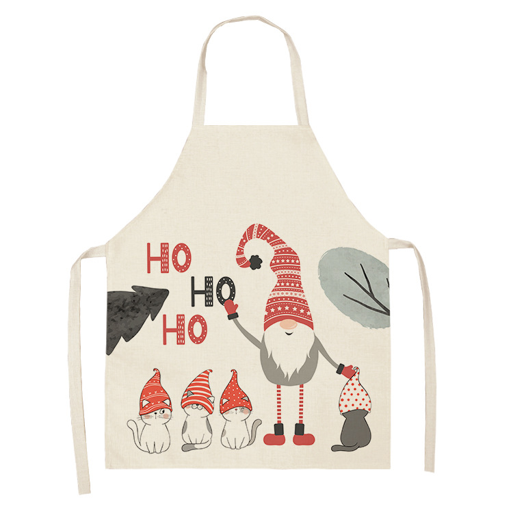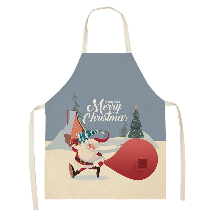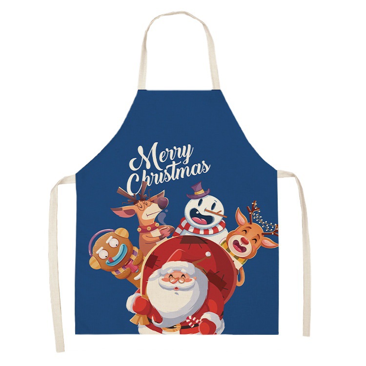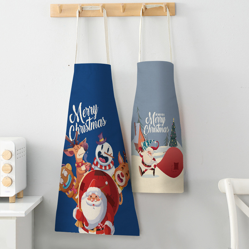 厂家直供圣诞节可爱老人麋鹿冬季挂脖家居厨房清洁防水围裙成人