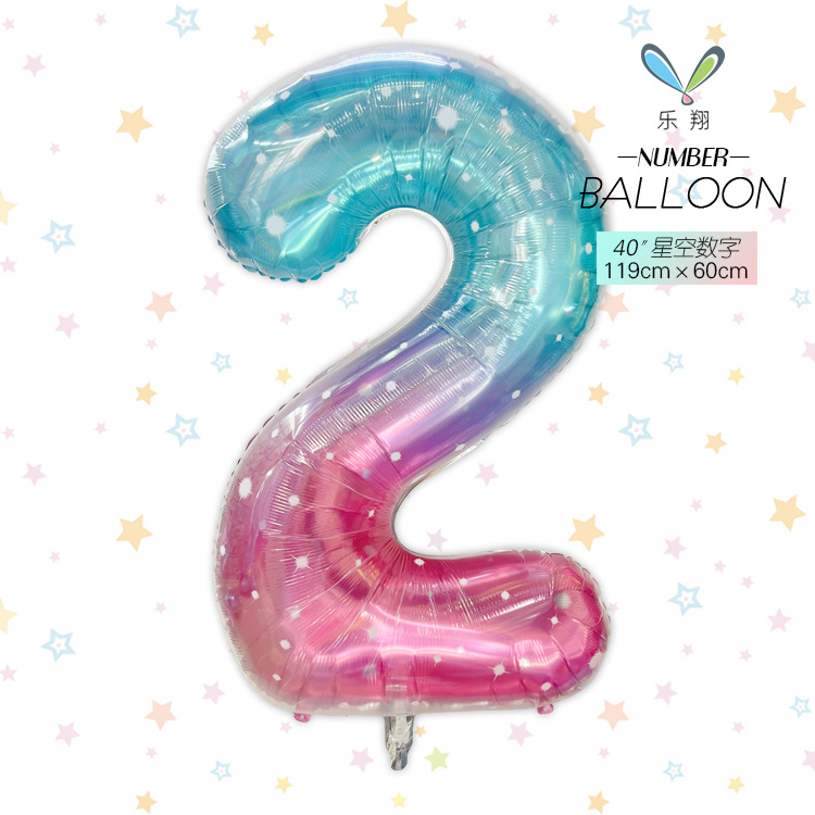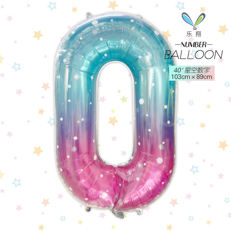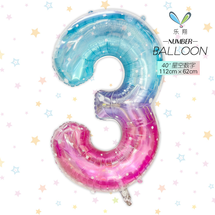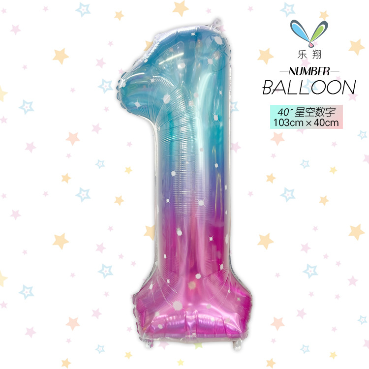 跨境 新款40寸星空 大号彩虹渐变数字铝膜气球可飘空生日派对布置