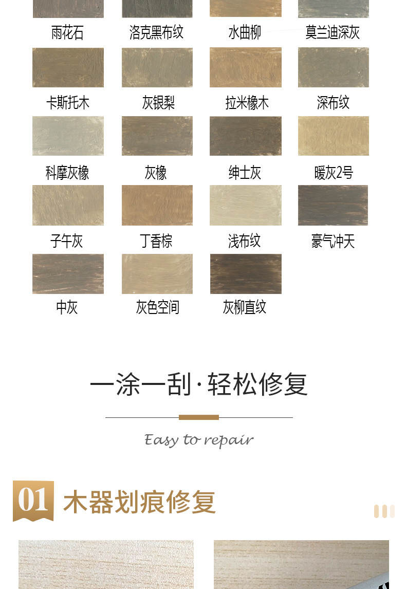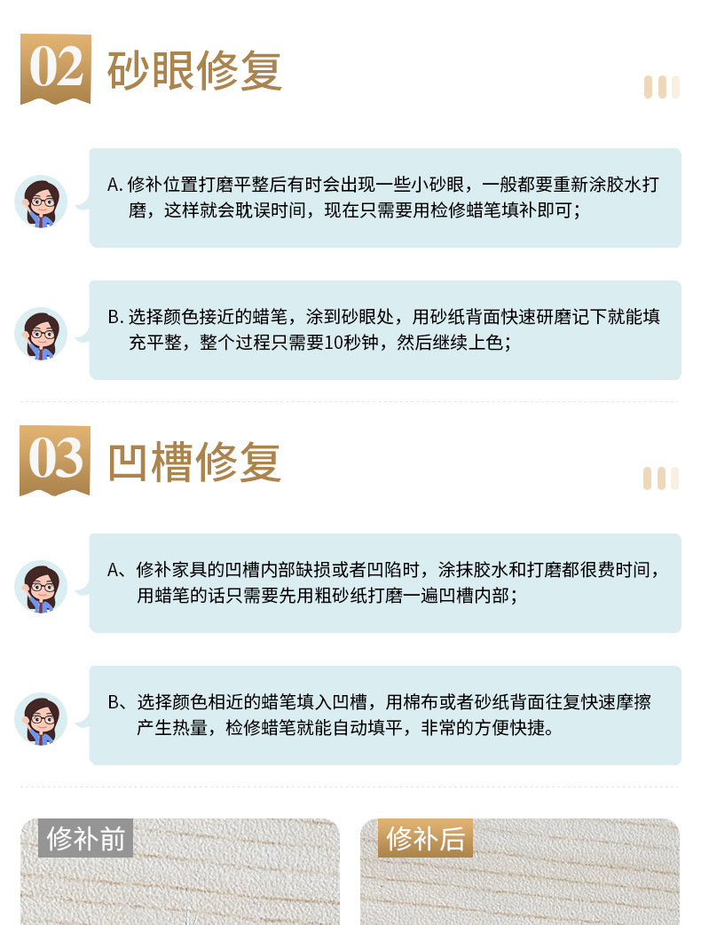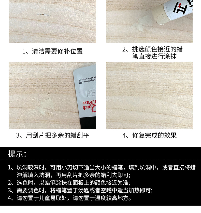 家具楼梯地板修补蜡笔补土填充蜡笔裂缝崩边深度擦伤填充蜡笔