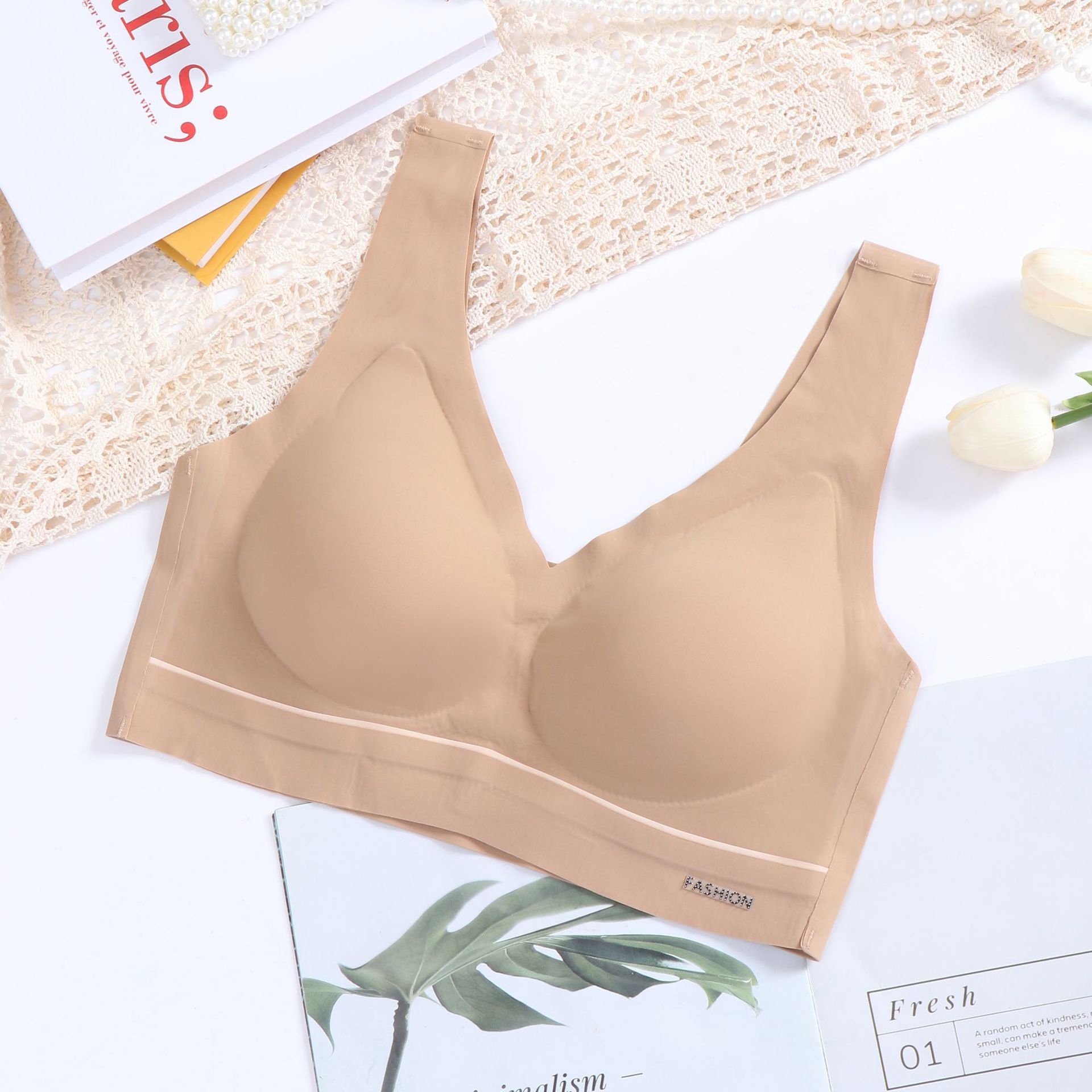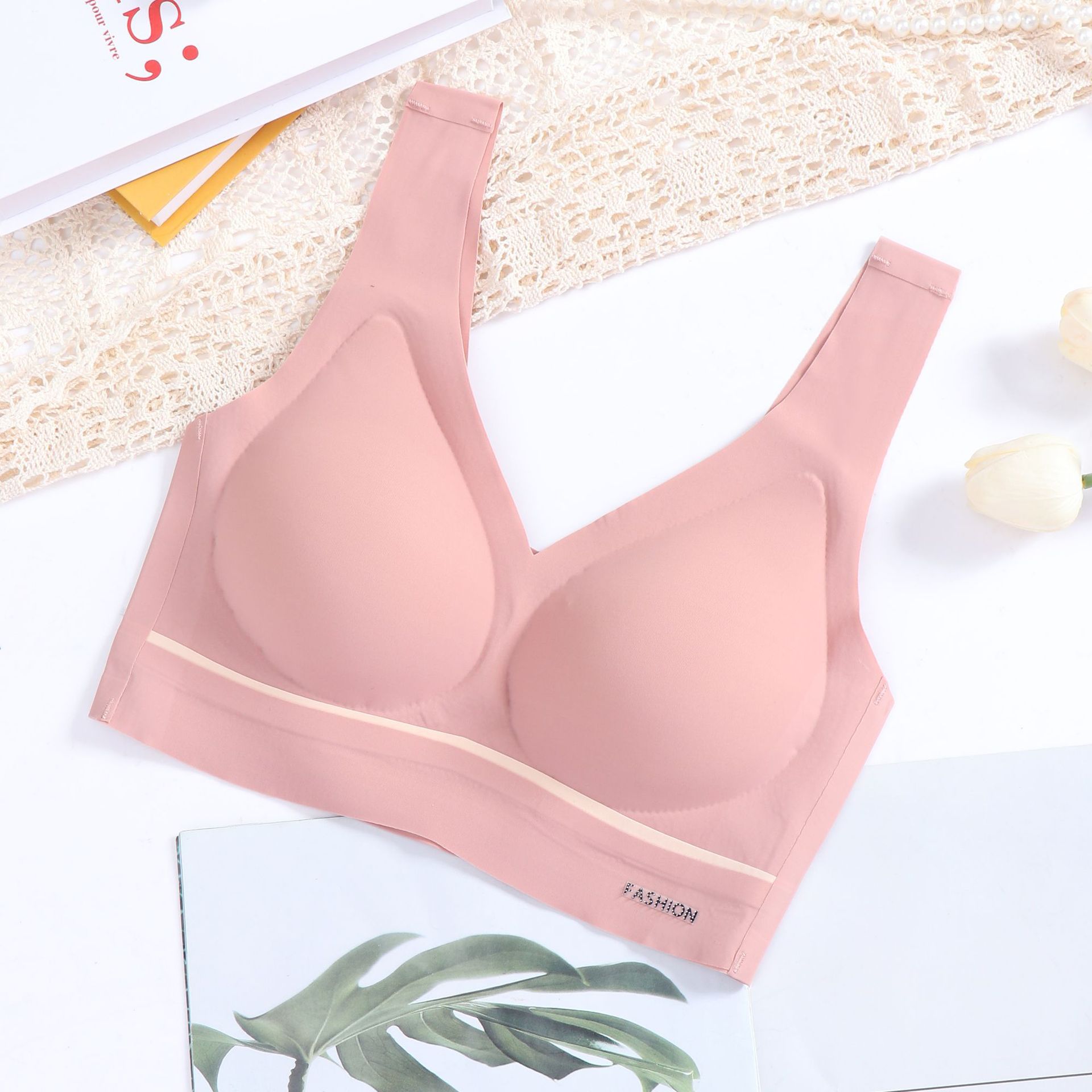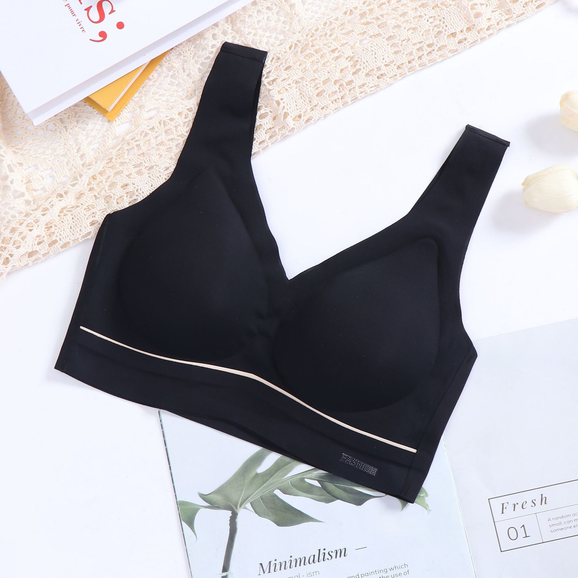 跨境直播云感6乳胶内衣女无痕无钢圈聚拢文胸打底抹胸式运动背心