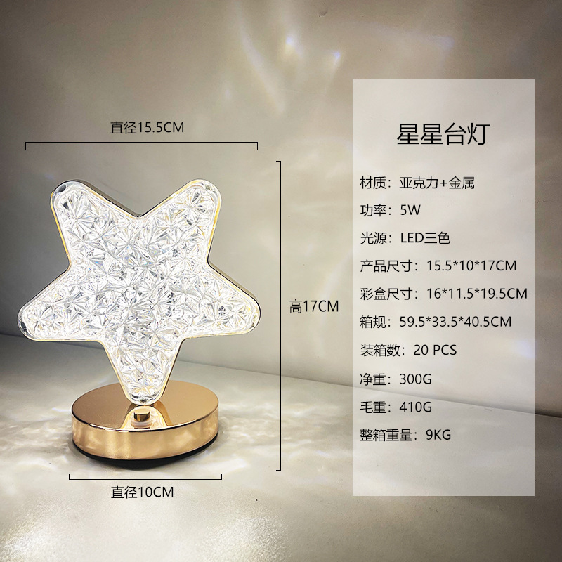 星星月亮氛围台灯金属亚克力简约现代儿童装饰礼品充电触摸氛围灯
