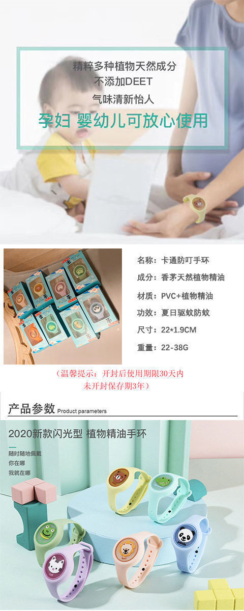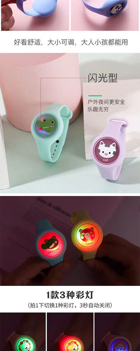 厂家发光驱蚊手环婴儿童女生版宝宝恐龙扣户外神器手链大人防蚊贴