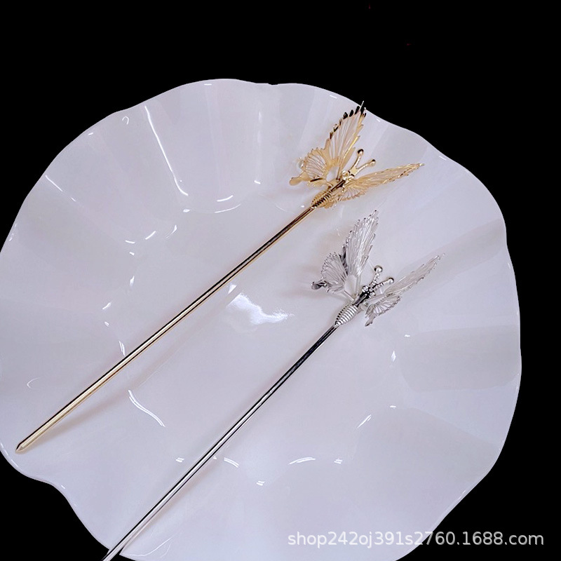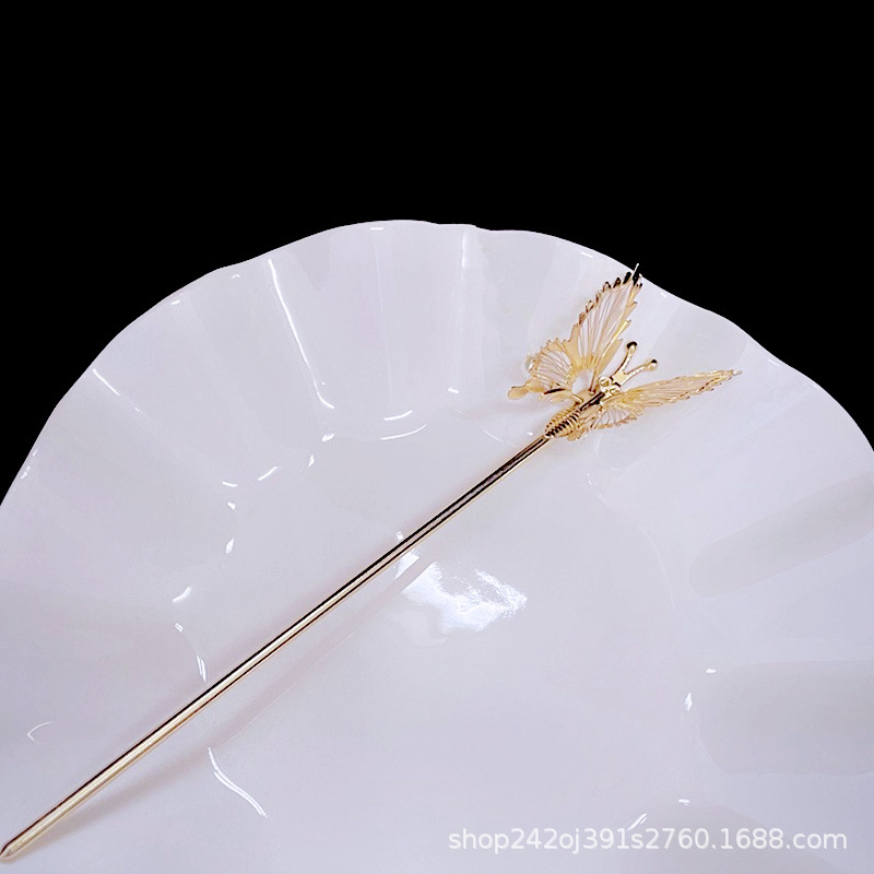 会动的古风蝴蝶流苏发簪女夏天盘发钗子高级感汉服步摇发钗簪子女