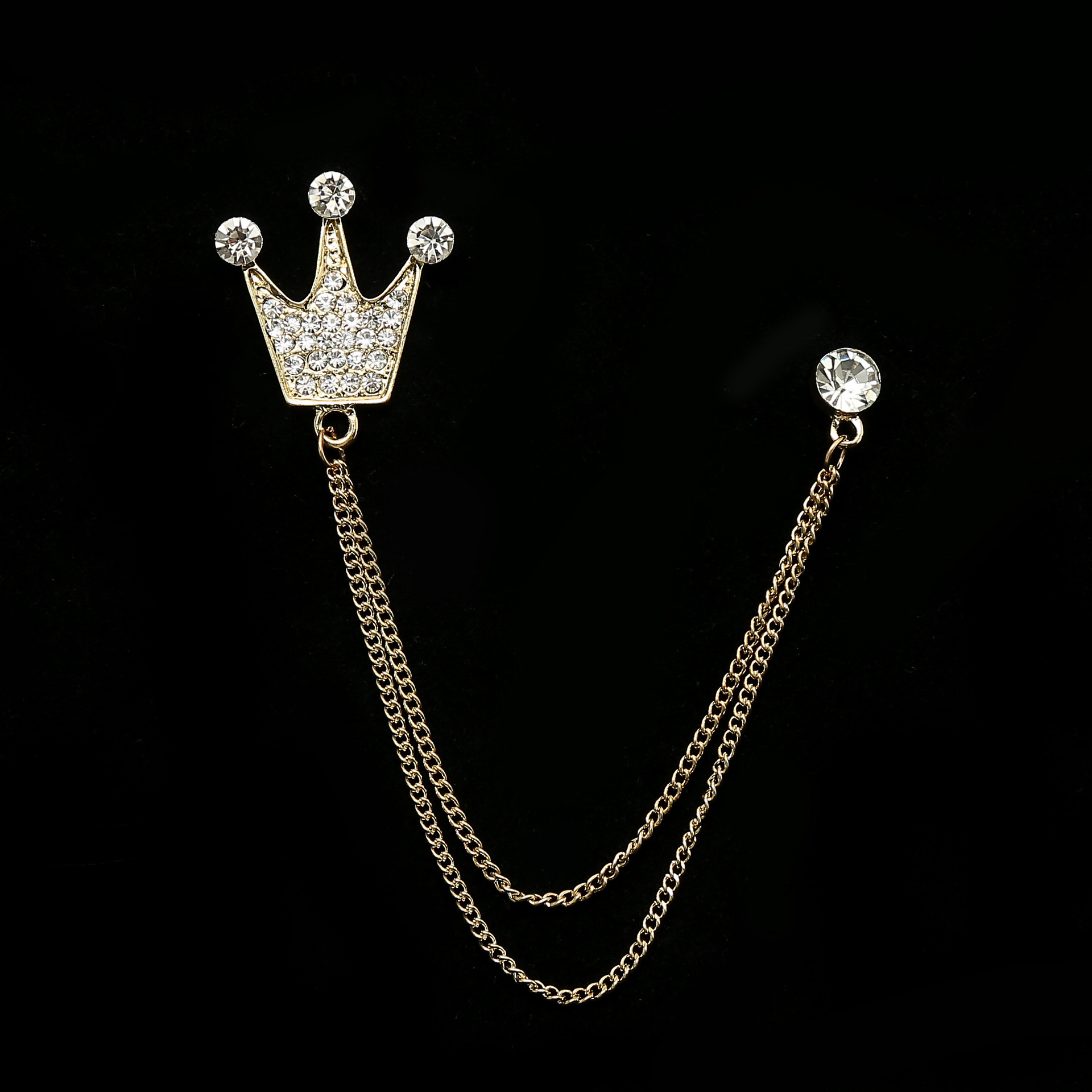 full diamond crown note with chain personalized suit accessories collar pin fashion trend men‘s chain five-pointed star brooch