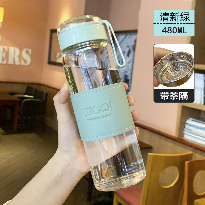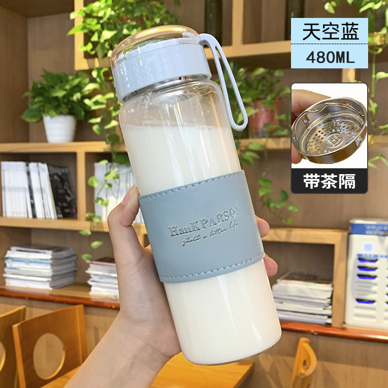 高颜值皮套玻璃杯高硼硅耐热带茶隔杯子单层水杯批发
