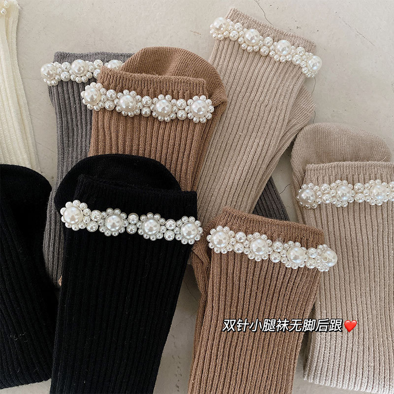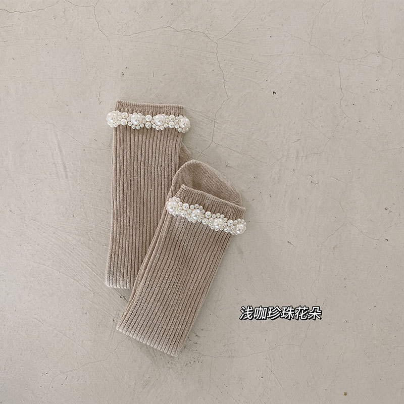 23ins秋季新款儿童袜高端珍珠公主风复古优雅女童袜棉中筒袜英伦