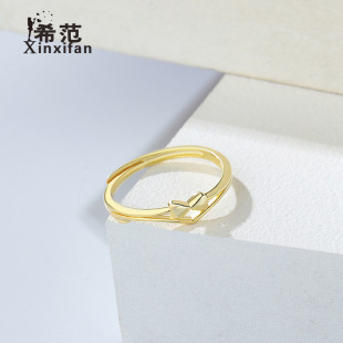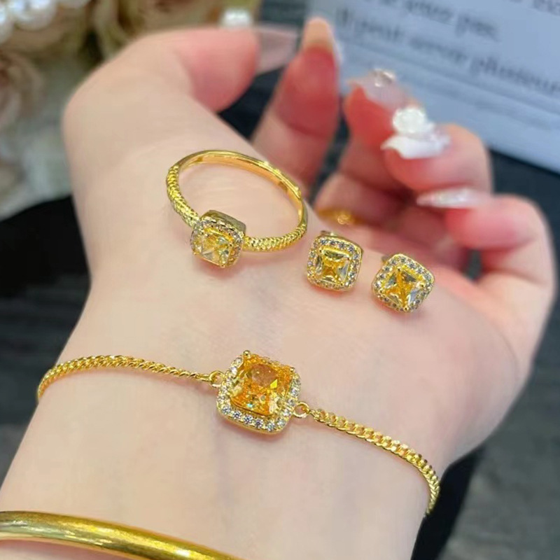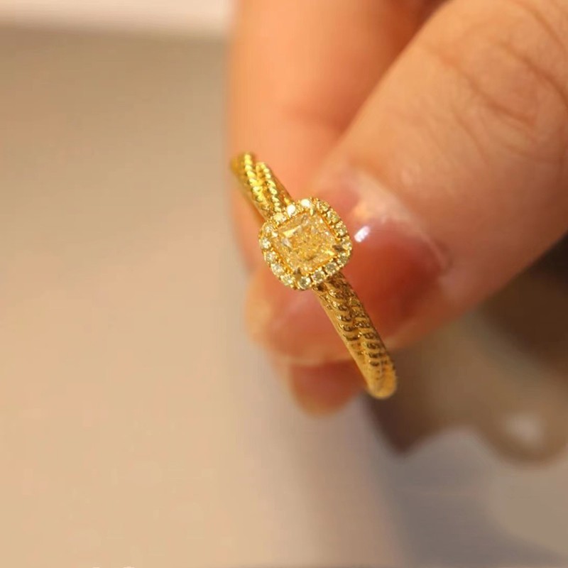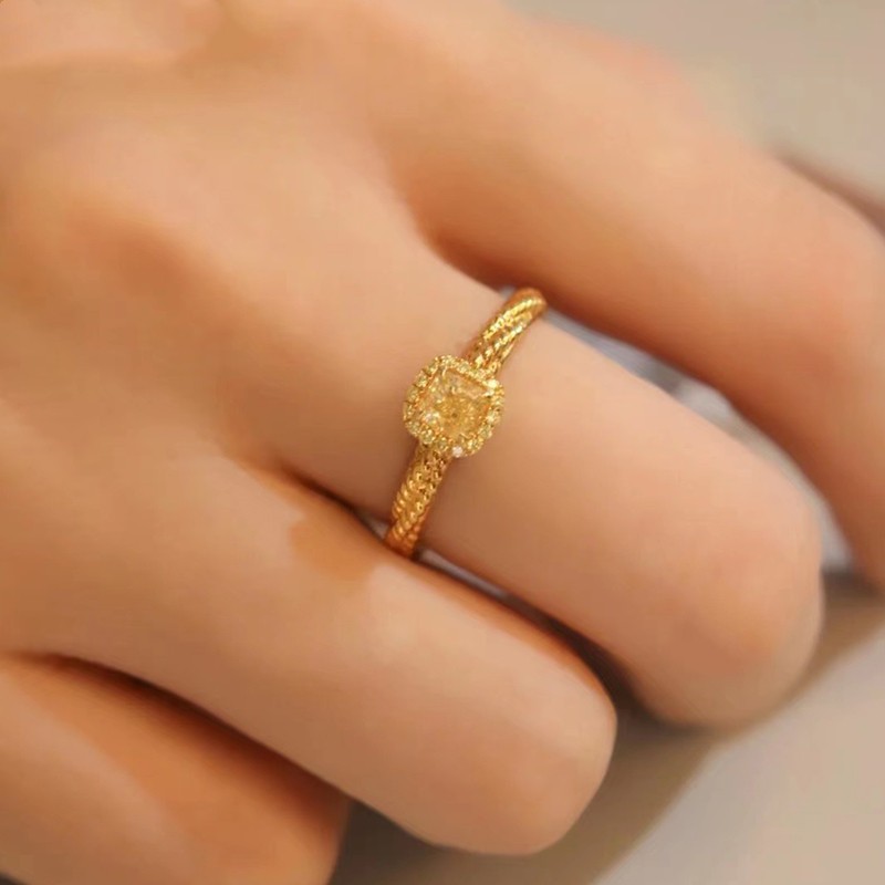 s925纯银小方糖黄钻戒指女黄金色黄水晶食指戒时尚轻奢高级