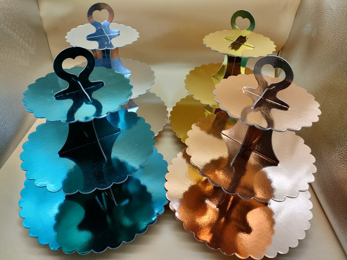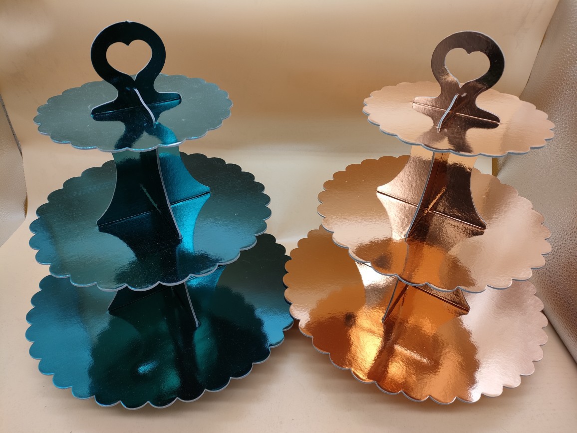 跨境热卖金银玫瑰金湖兰双面膜三层蛋糕架生日party聚会甜品展示