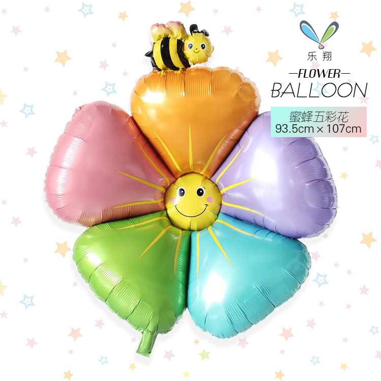 新款雏菊铝膜气球 七彩笑脸蜜蜂五瓣花 派对户外野餐露营布置装饰
