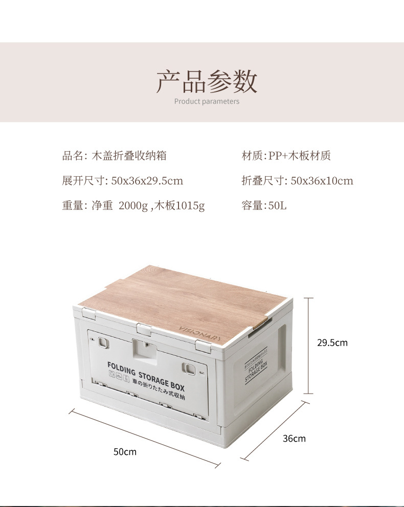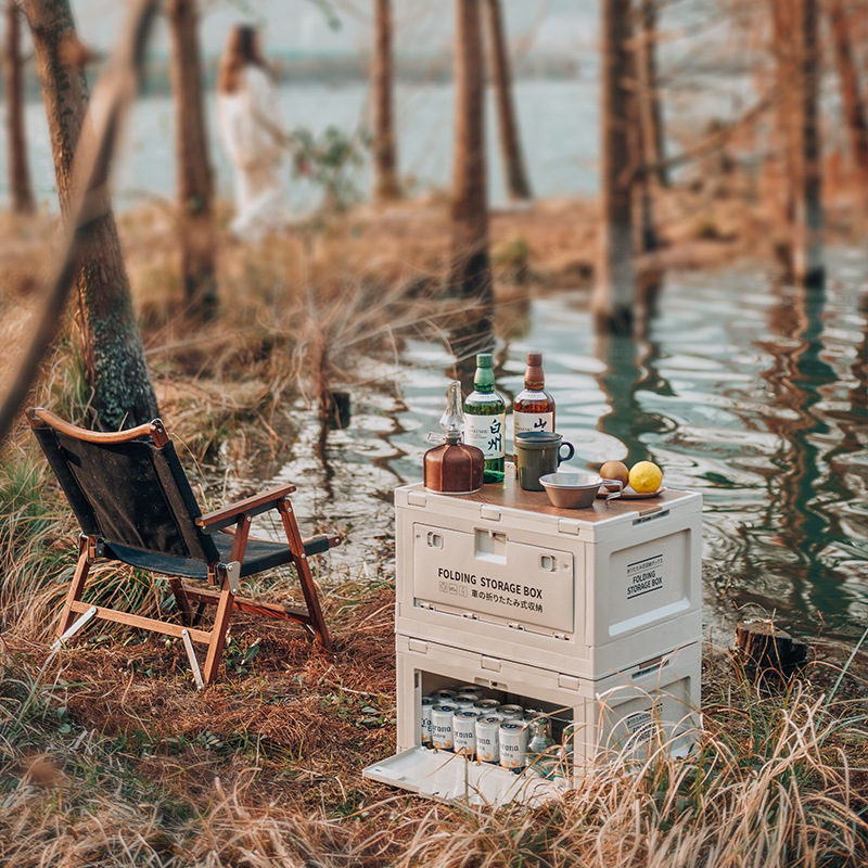 折叠收纳盒木盖可侧开旅行户外收纳箱多功能露营车载后备箱