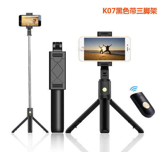 K07新款手机蓝牙自拍杆S03带镜子伸缩杆横竖手机夹一体折叠自拍器