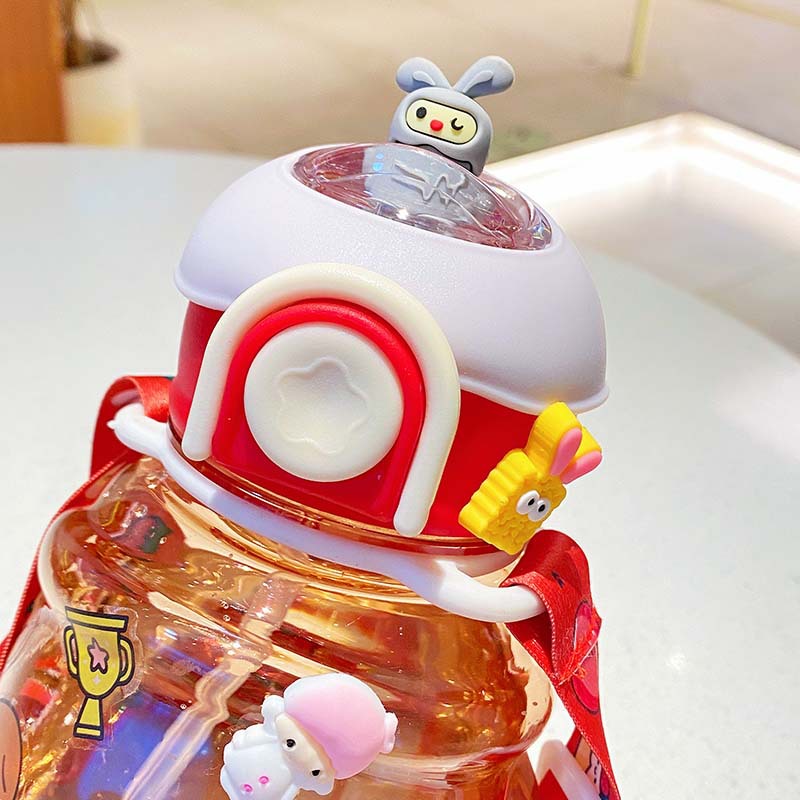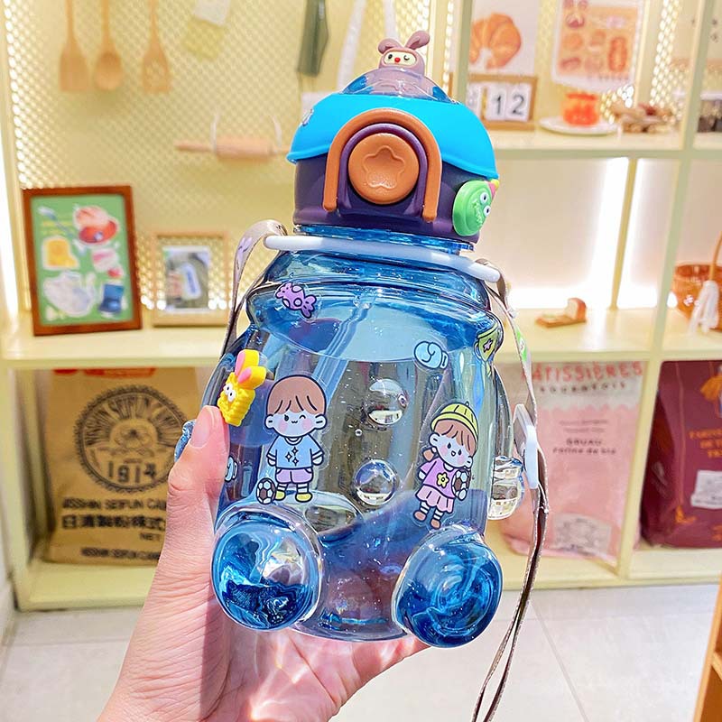 新款卡通塑料杯可斜跨吸管饮水杯大容量高颜值小熊弹跳盖水壶批发