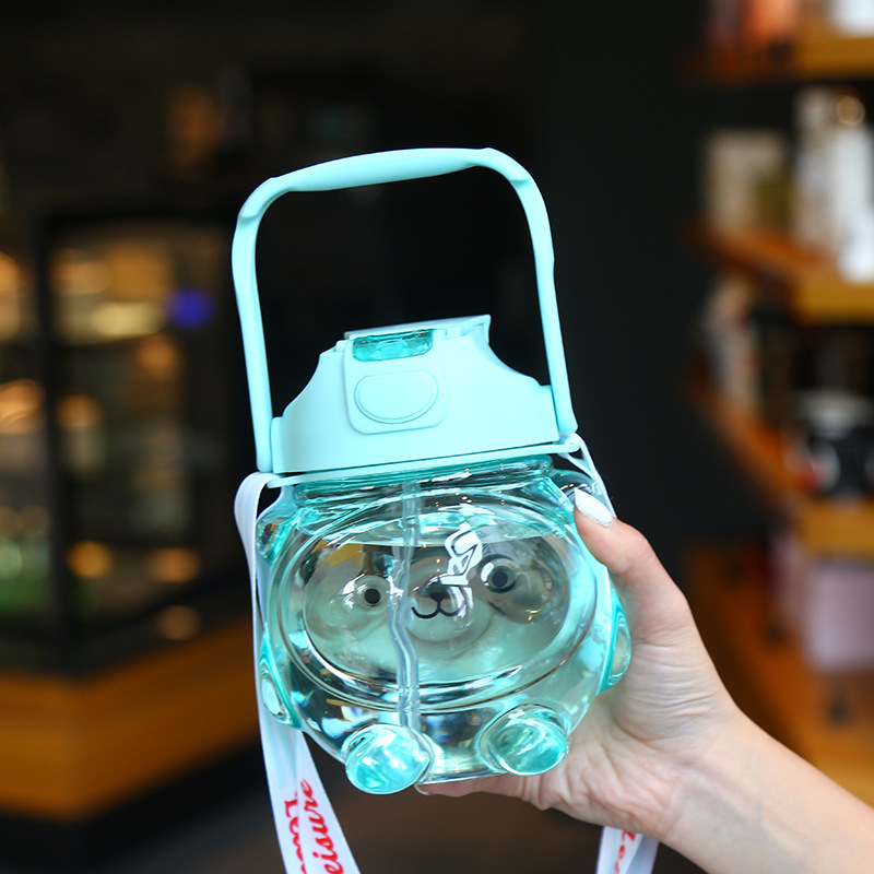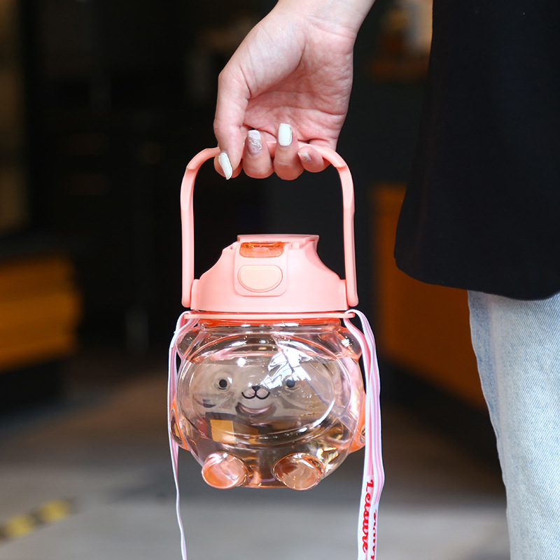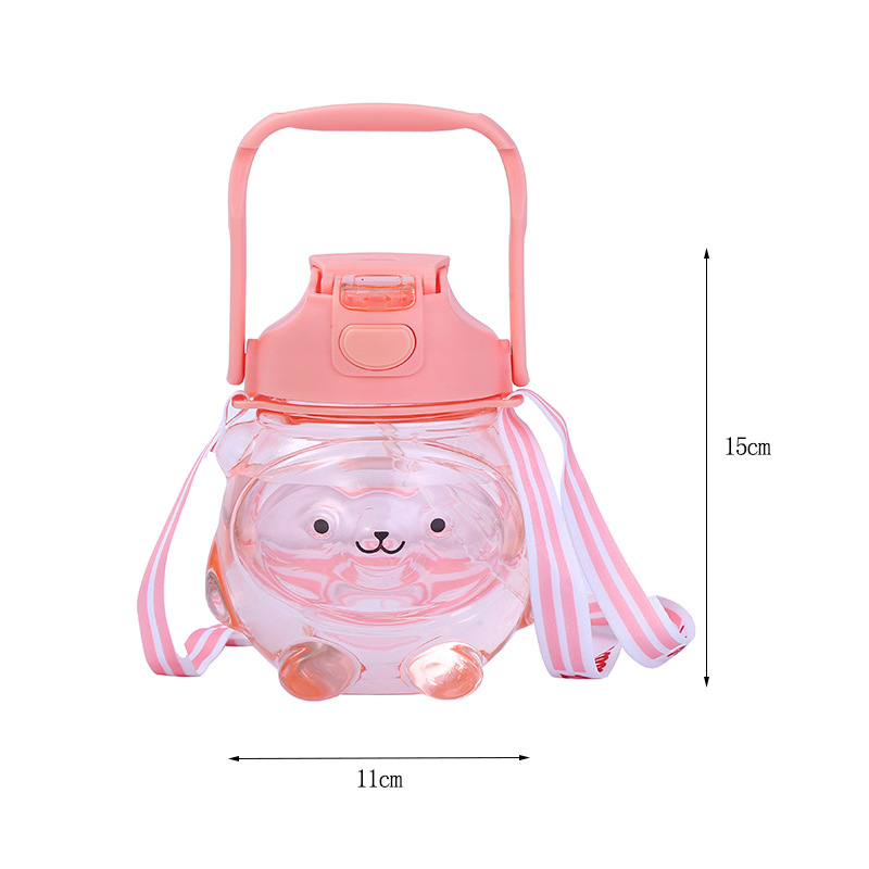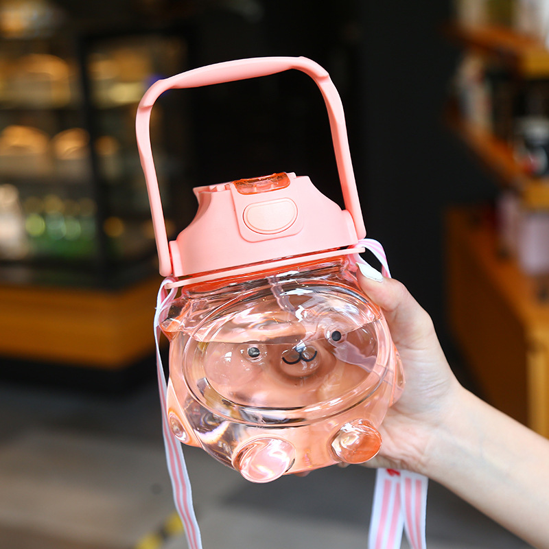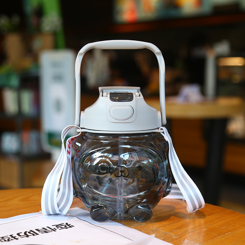 儿童双饮胖墩墩背带杯可爱便携夏季学生大容量1000ml大肚塑料水壶