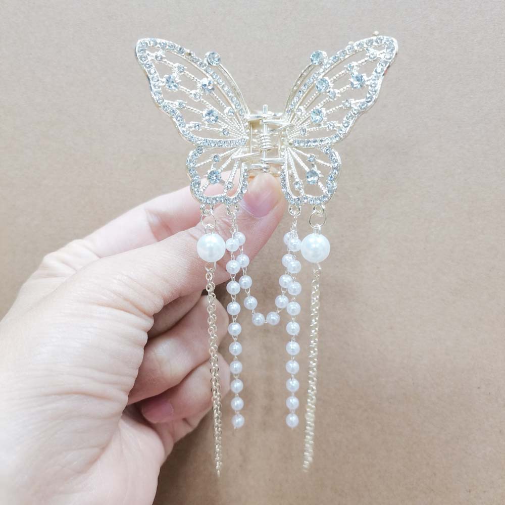 水钻蝴蝶带长流苏发夹头饰少女半扎流苏链条抓夹头饰发饰