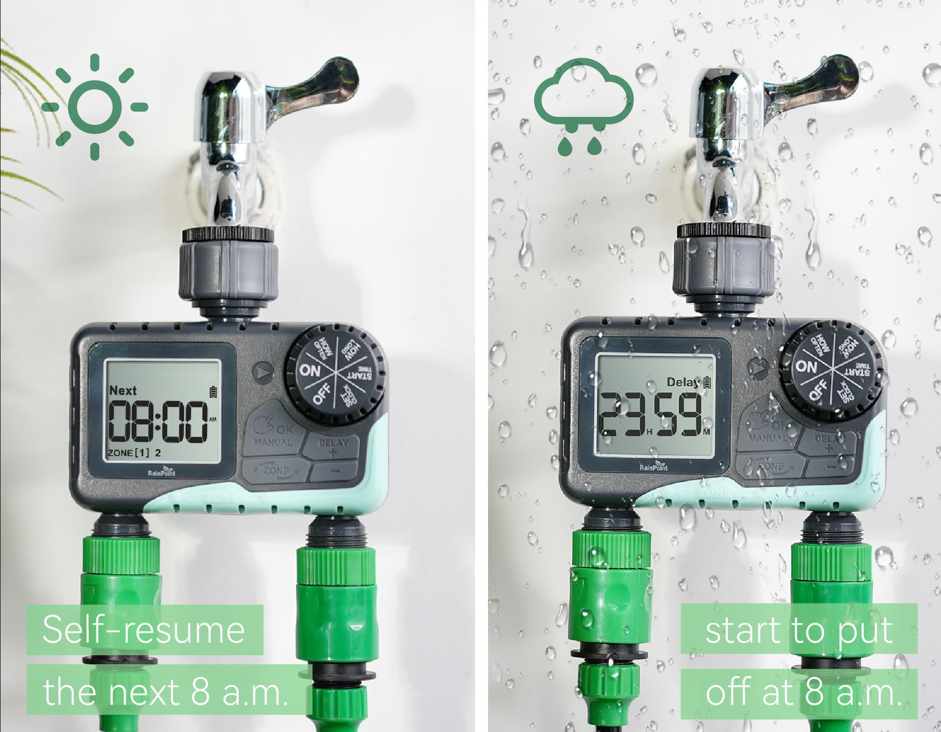 Rainpoint 双路灌溉 智能控制器 定时灌溉 自动浇花水器 院子草坪