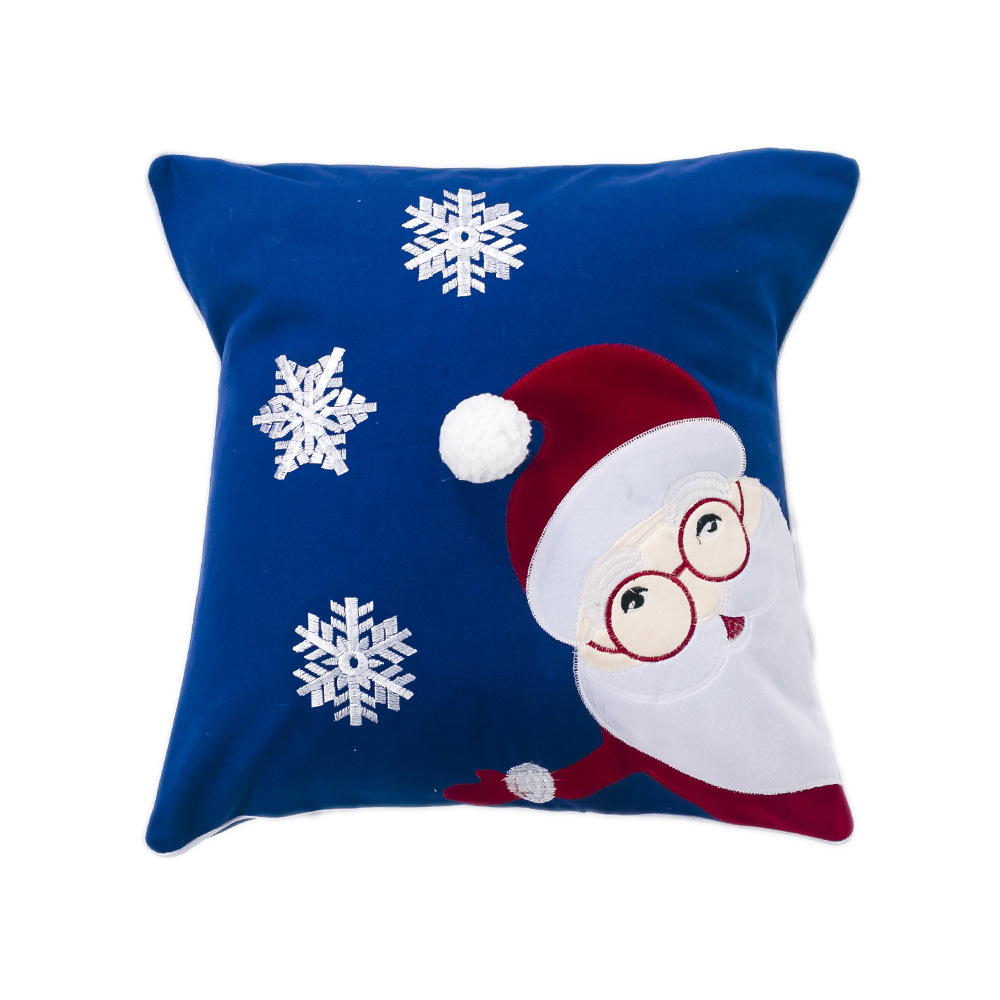 跨境圣诞节用品棉麻雪人绣花抱枕圣诞老人绒面圣诞节装饰靠垫