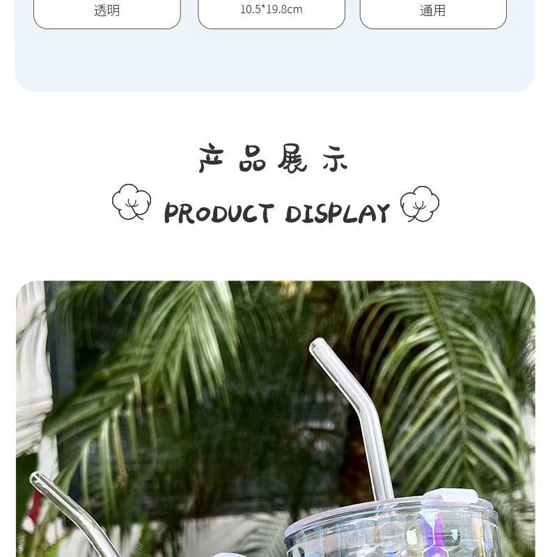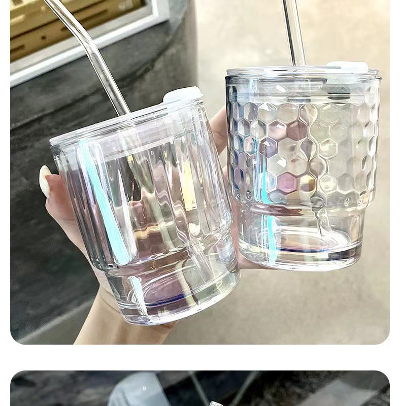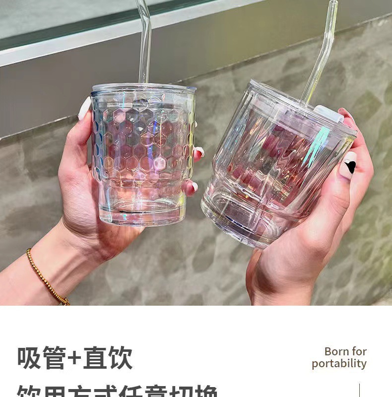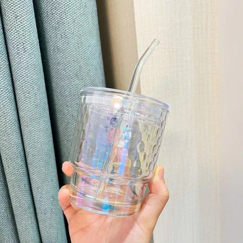 炫彩镭射玻璃杯北极光ins风 高颜值夏季竹节杯咖啡礼品杯子吸管杯