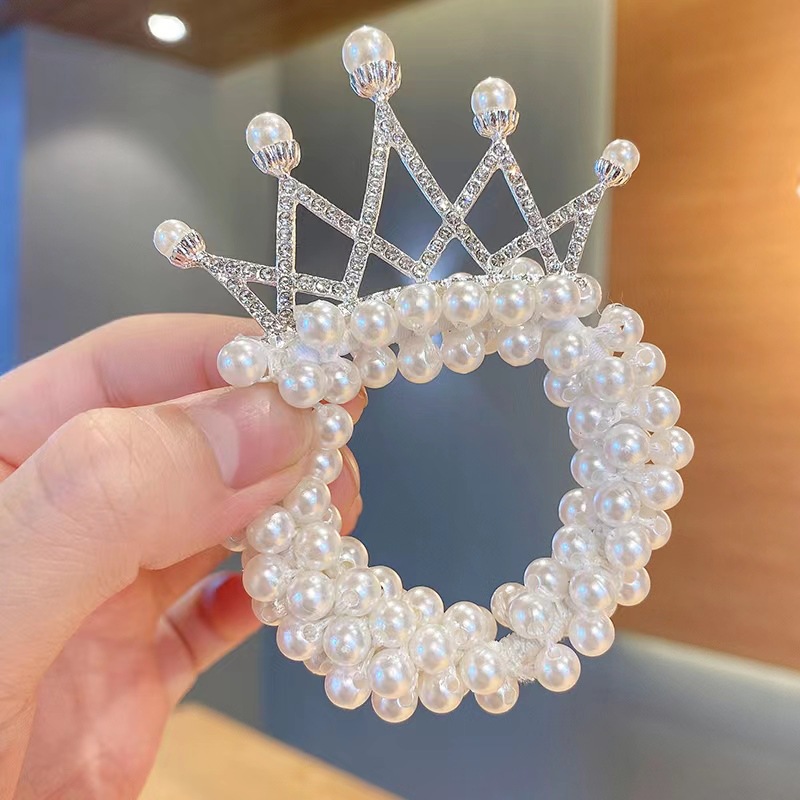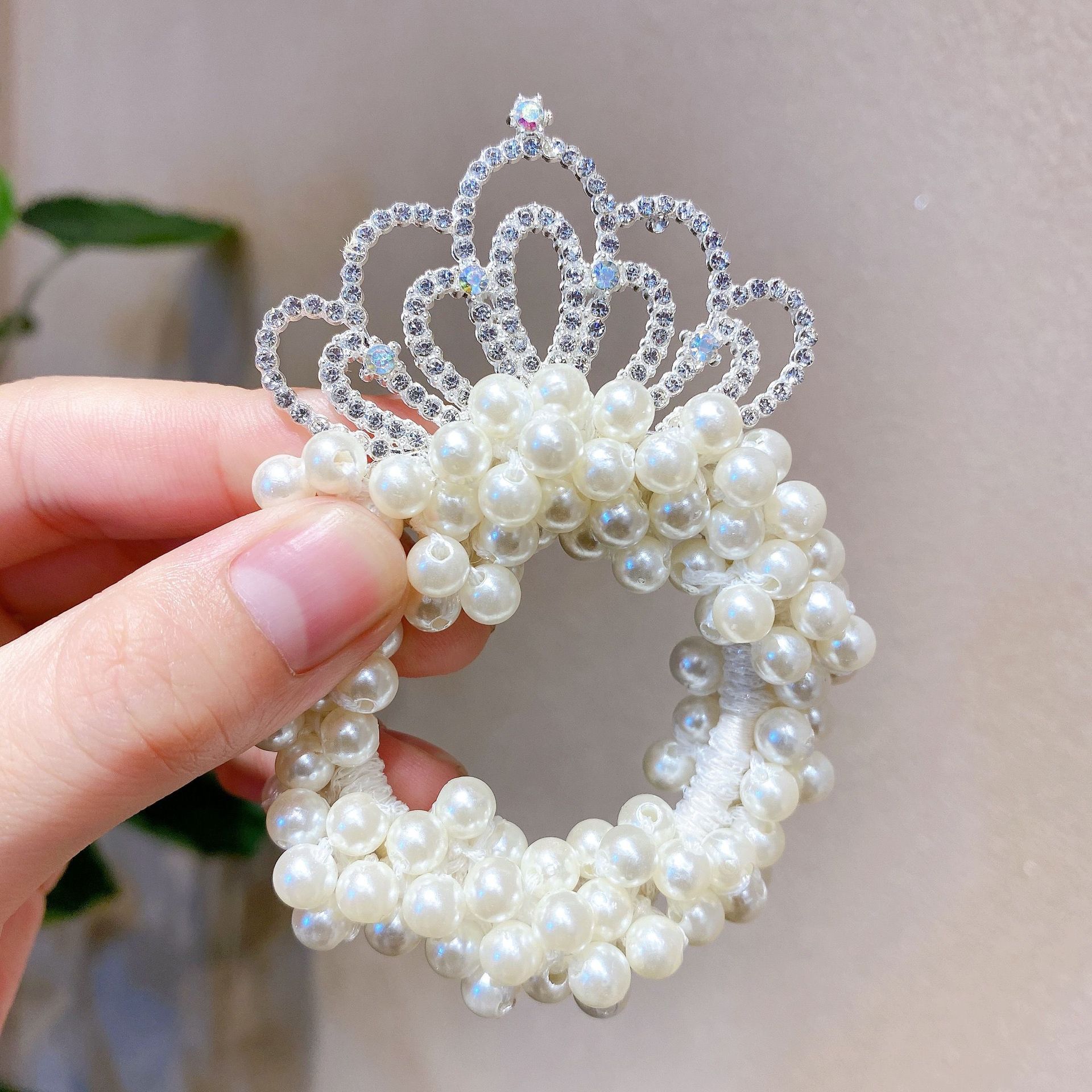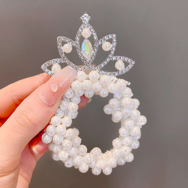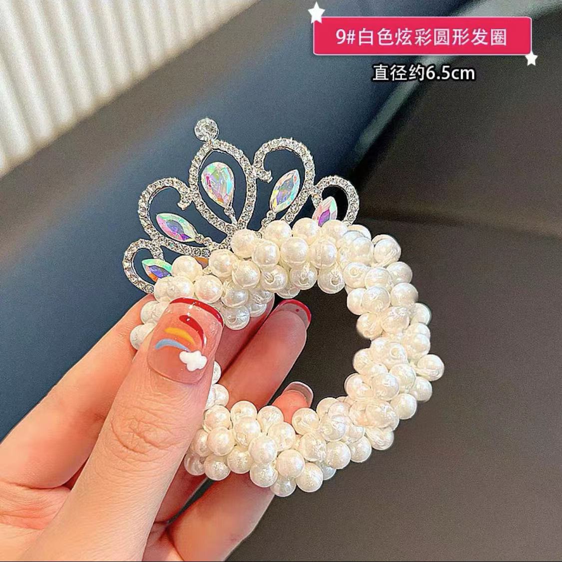 儿童皇冠头饰公主丸子头发圈头绳女童韩版网红新款珍珠扎马尾头花