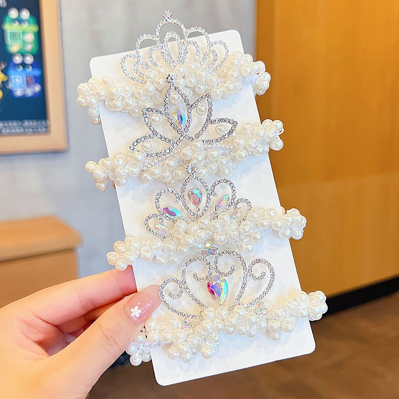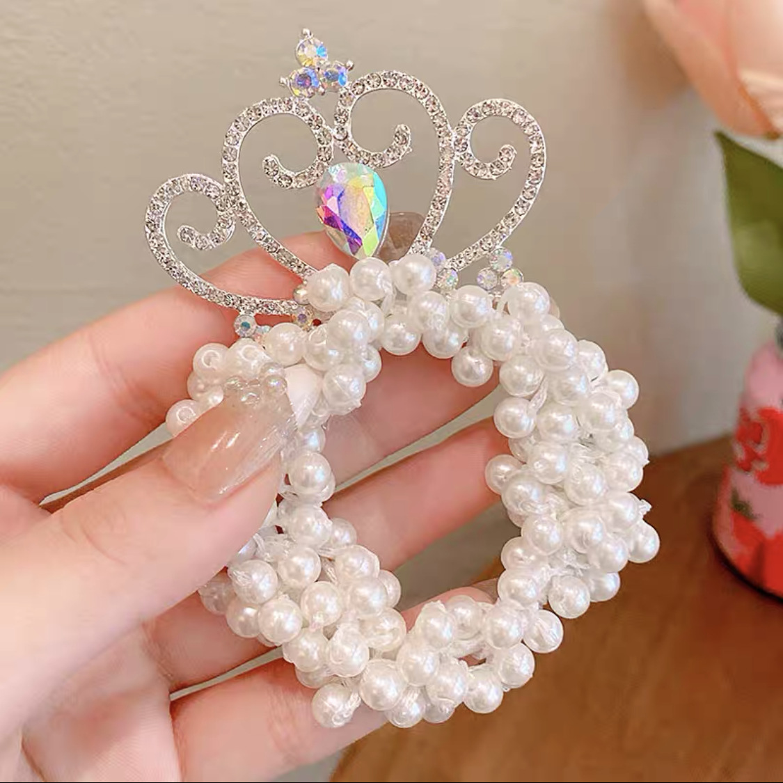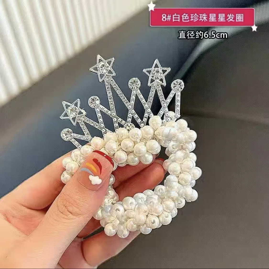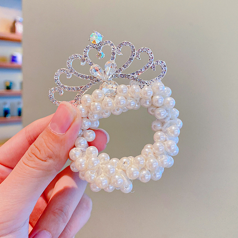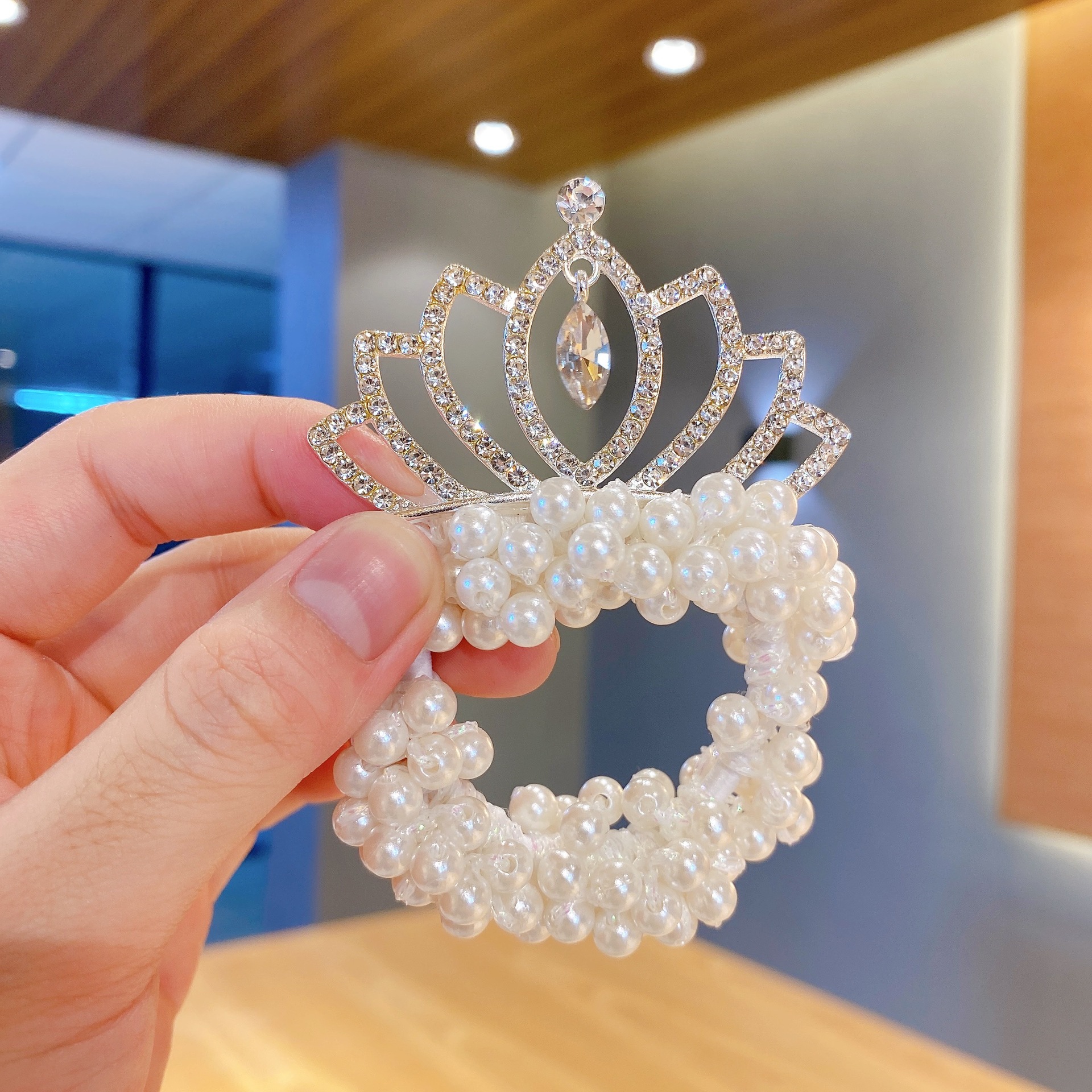 儿童皇冠头饰公主丸子头发圈头绳女童韩版网红新款珍珠扎马尾头花