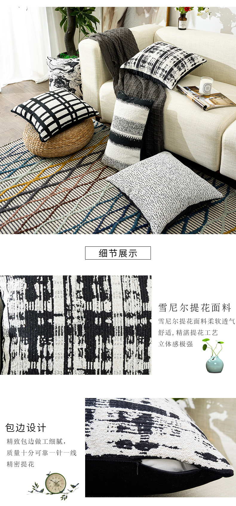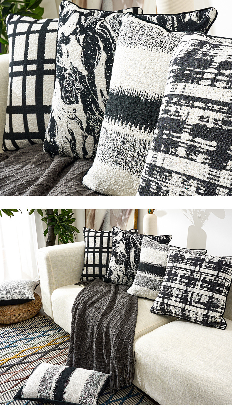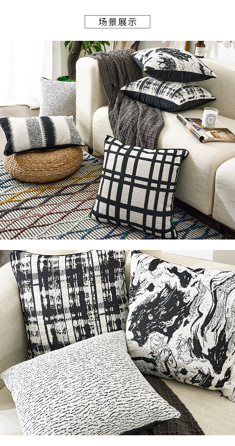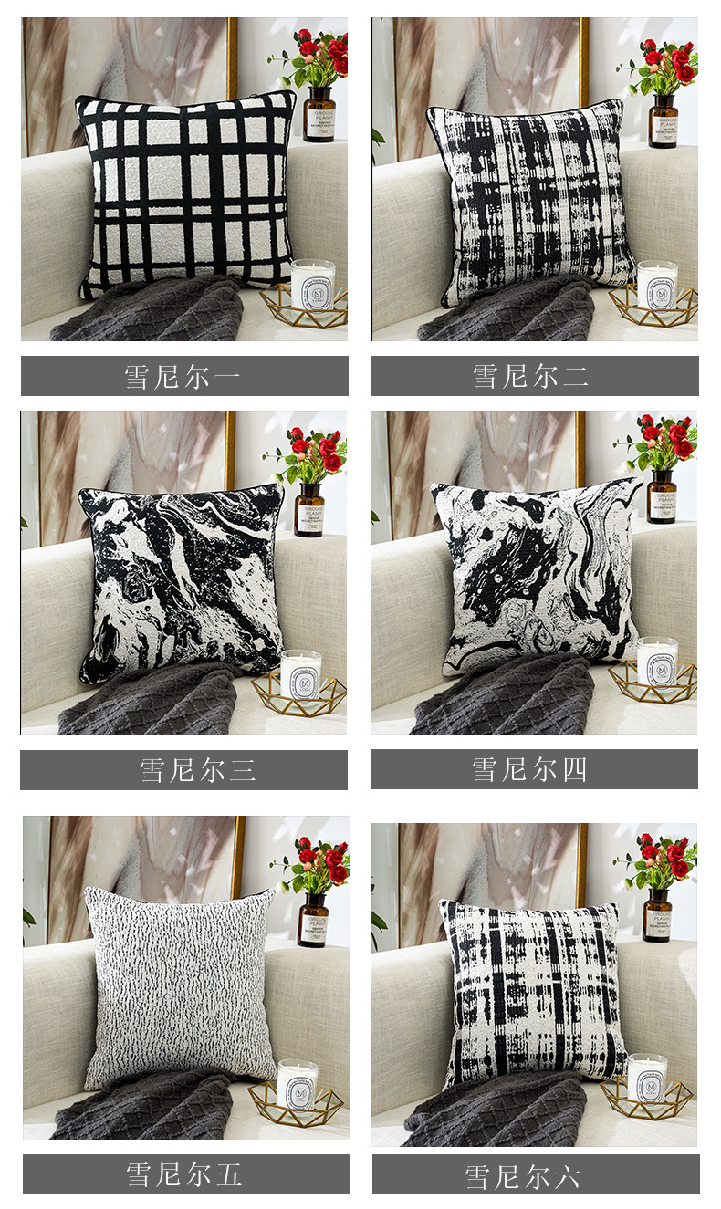 北欧风雪尼尔提花超软黑白ins时尚简约居家装饰车用靠垫套抱枕套