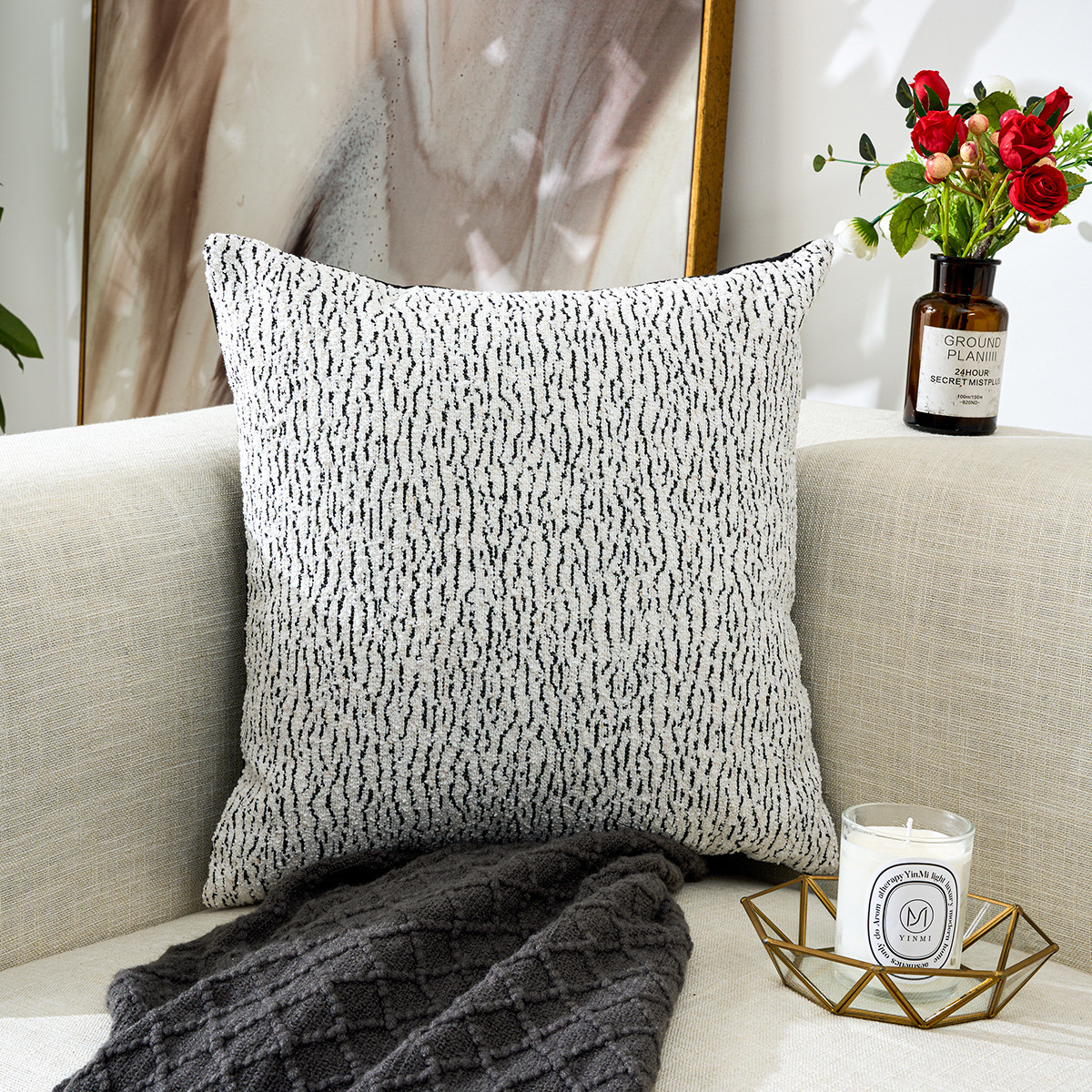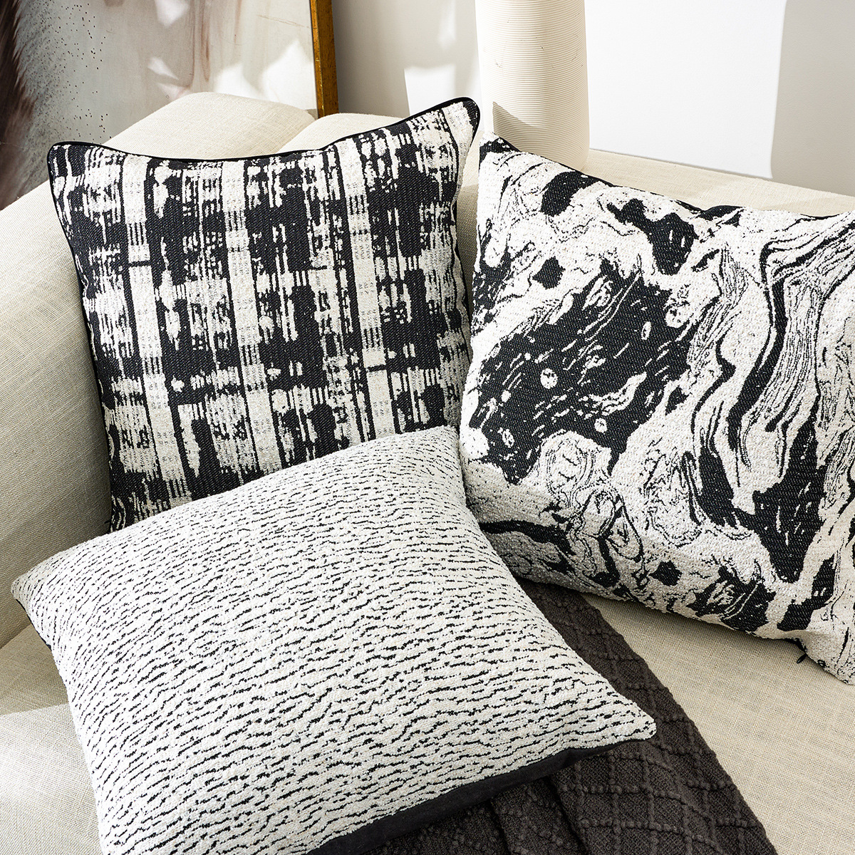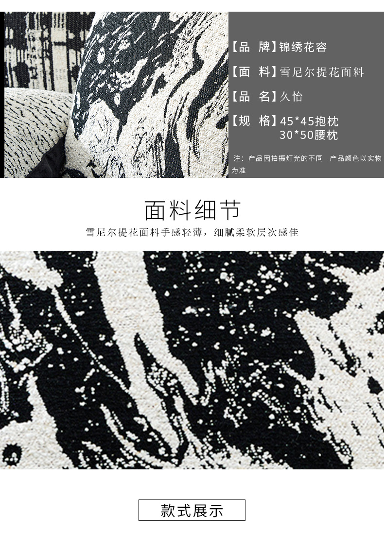 北欧风雪尼尔提花超软黑白ins时尚简约居家装饰车用靠垫套抱枕套