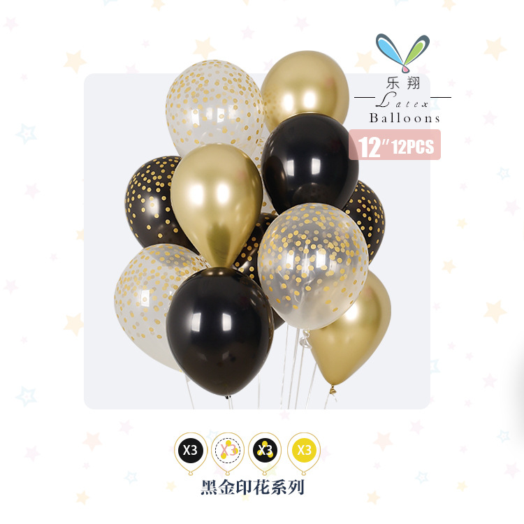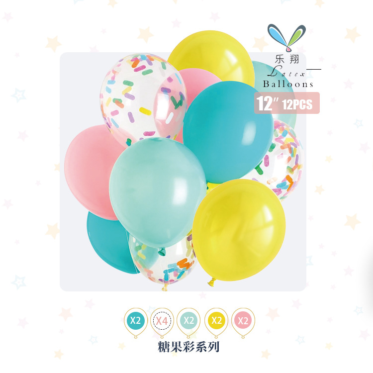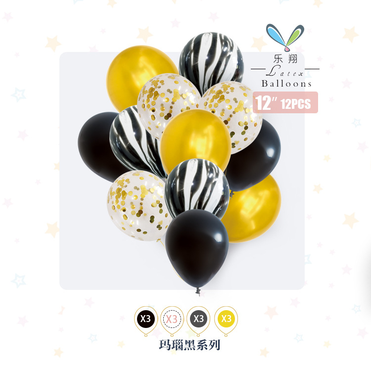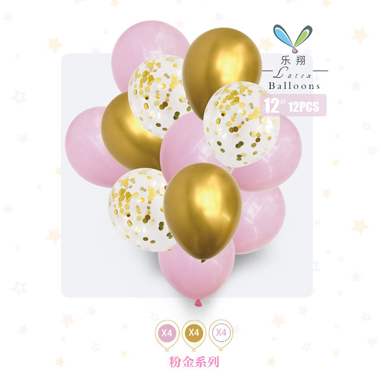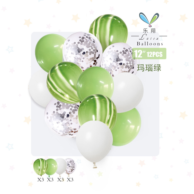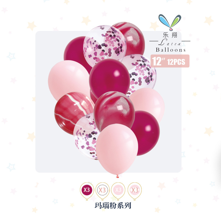 12pcs乳胶球亮片套装 生日结婚新年派对装饰配球组合 玛瑙色系