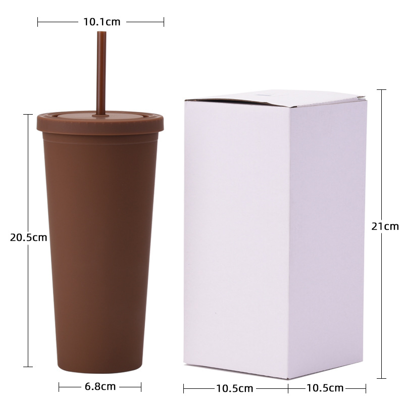 跨境直供双层塑料吸管杯定制简约24OZ现货大容量水杯磨砂随手杯