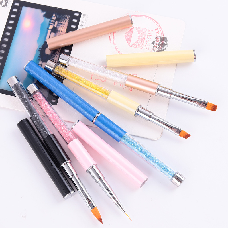 水钻杆美甲水晶笔光疗笔刷套装 新款平头小排笔光疗拉线笔雕花笔