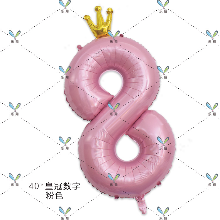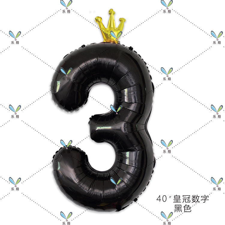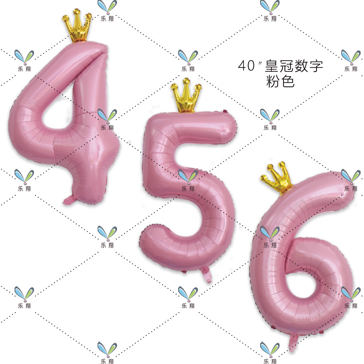 跨境热销 40寸皇冠数字铝膜气球可飘空 生日派对求婚布置装饰气球
