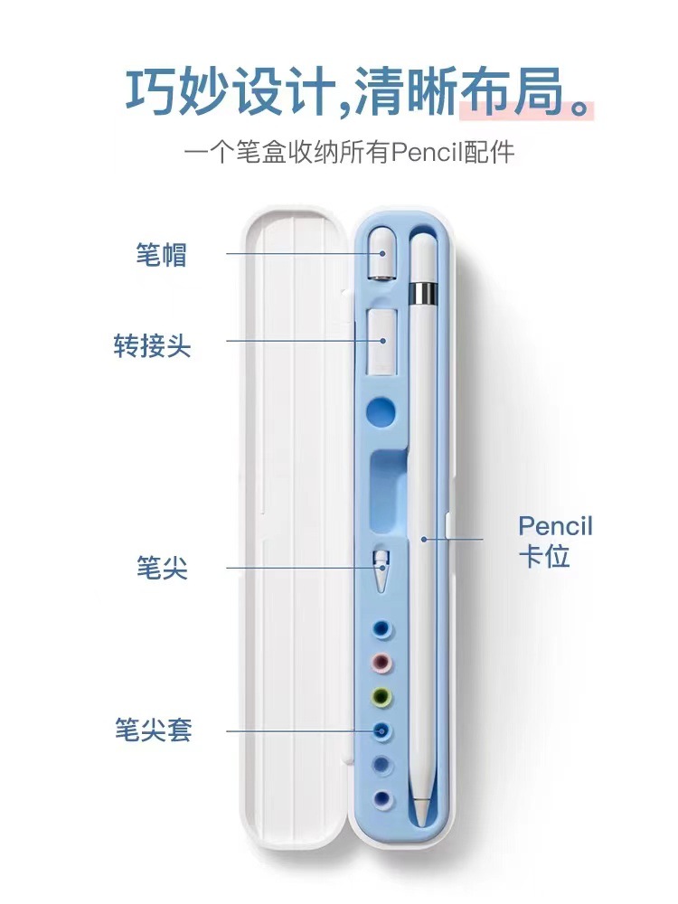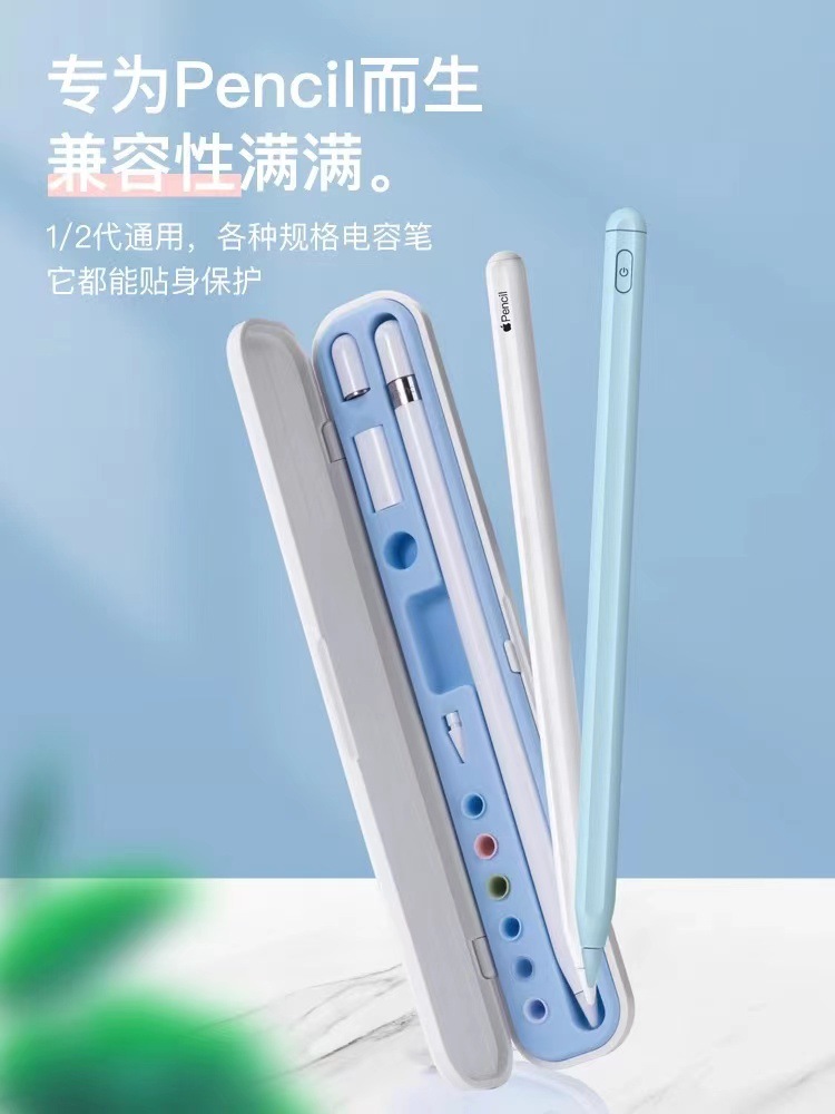 iPadpencil配件收纳盒笔盒硅胶一代二代电容笔笔尖转接头配件笔盒