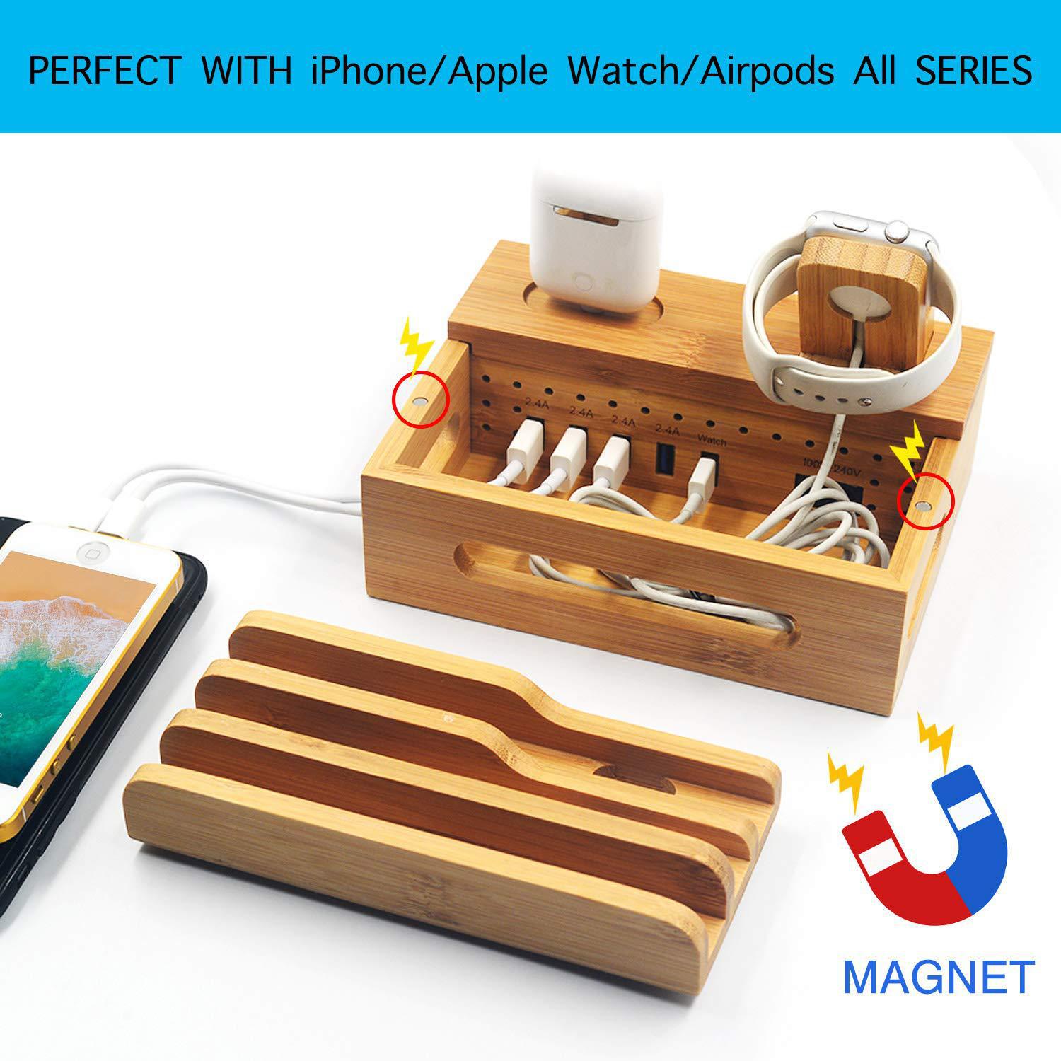 USB多功能充竹木iphone12平板watch收纳站五合一竹子充支架UL
