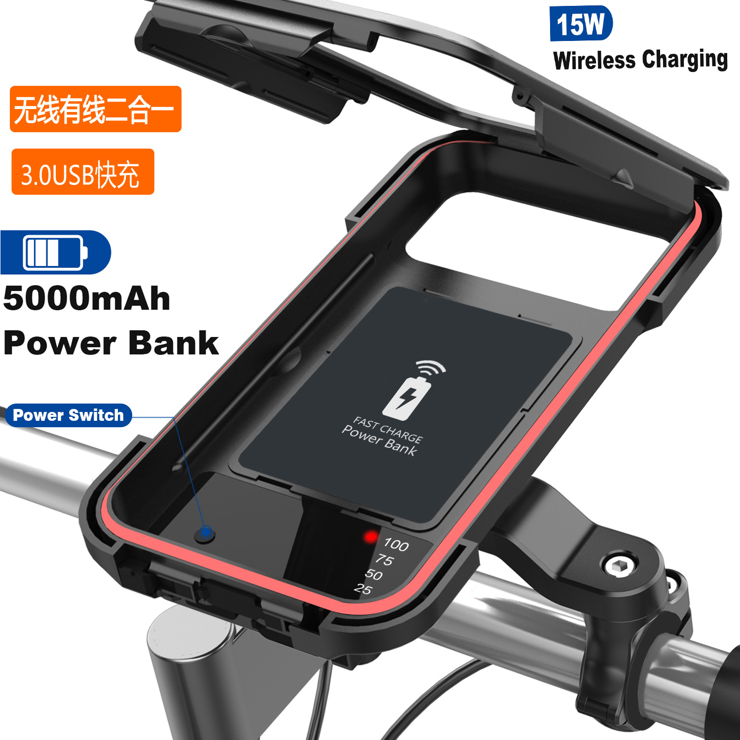 外贸自行车手机支架电动车防水支架外卖导航摩托车无线充USB充电