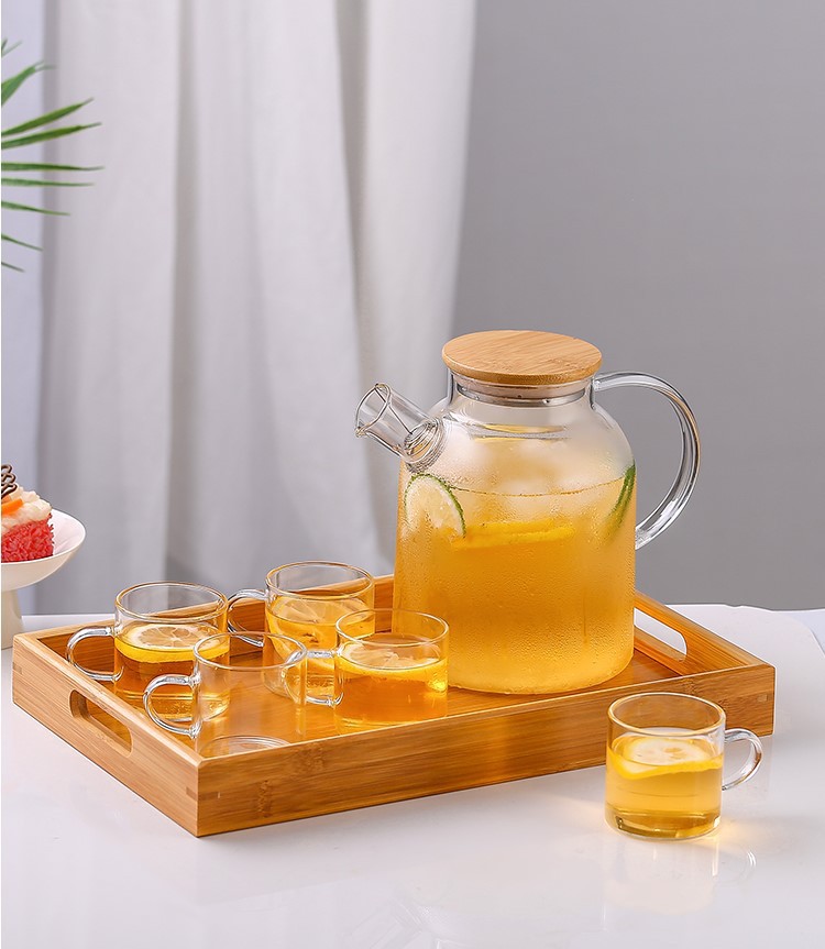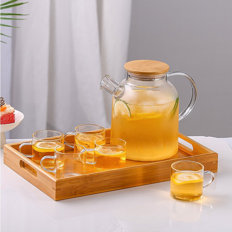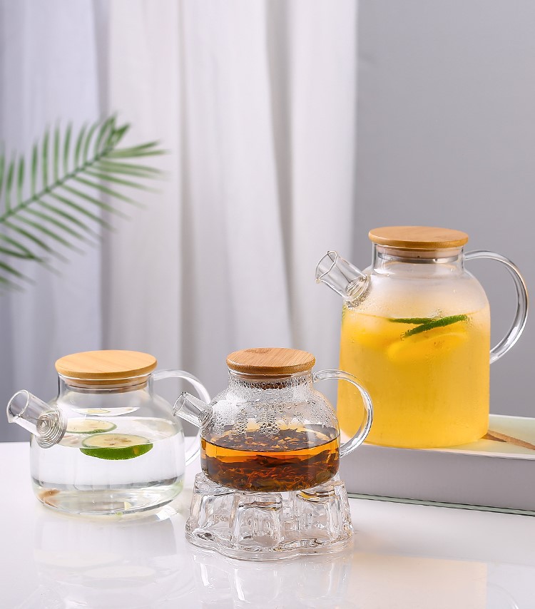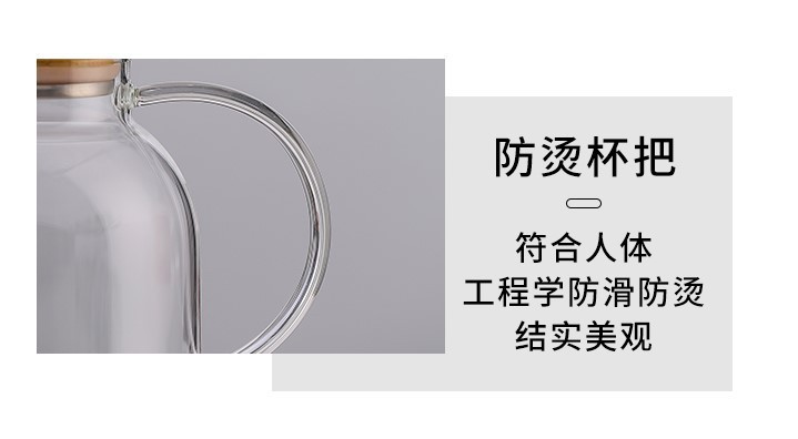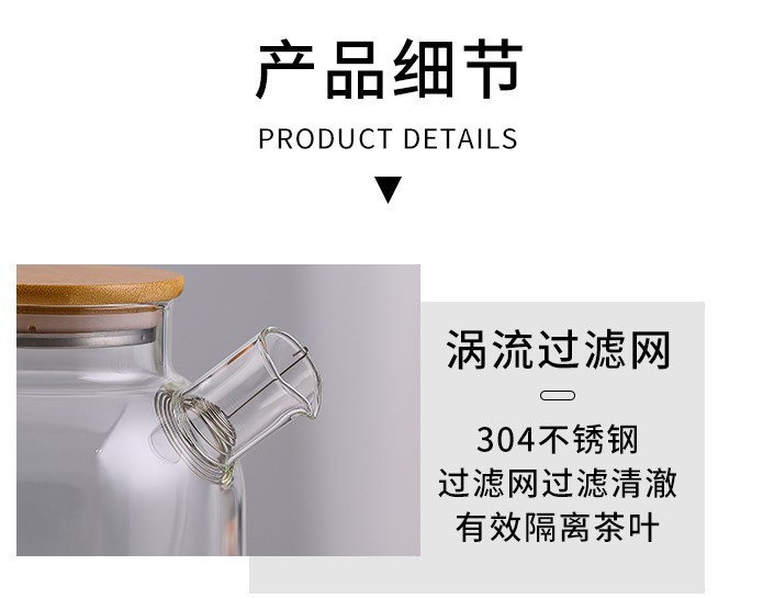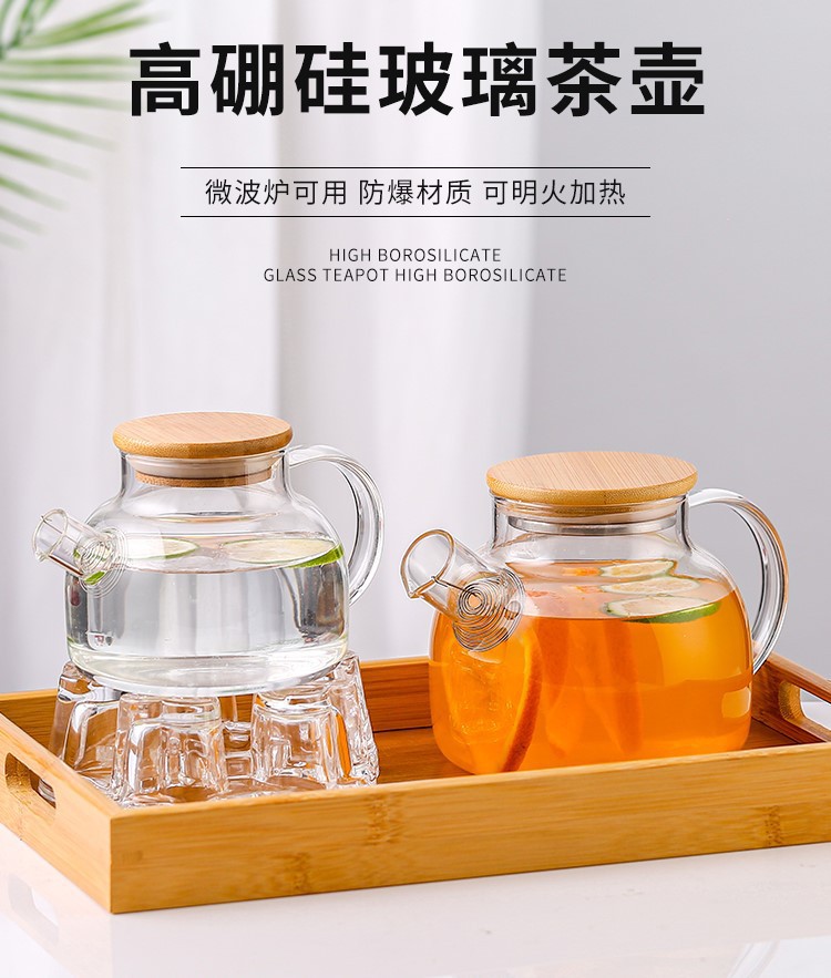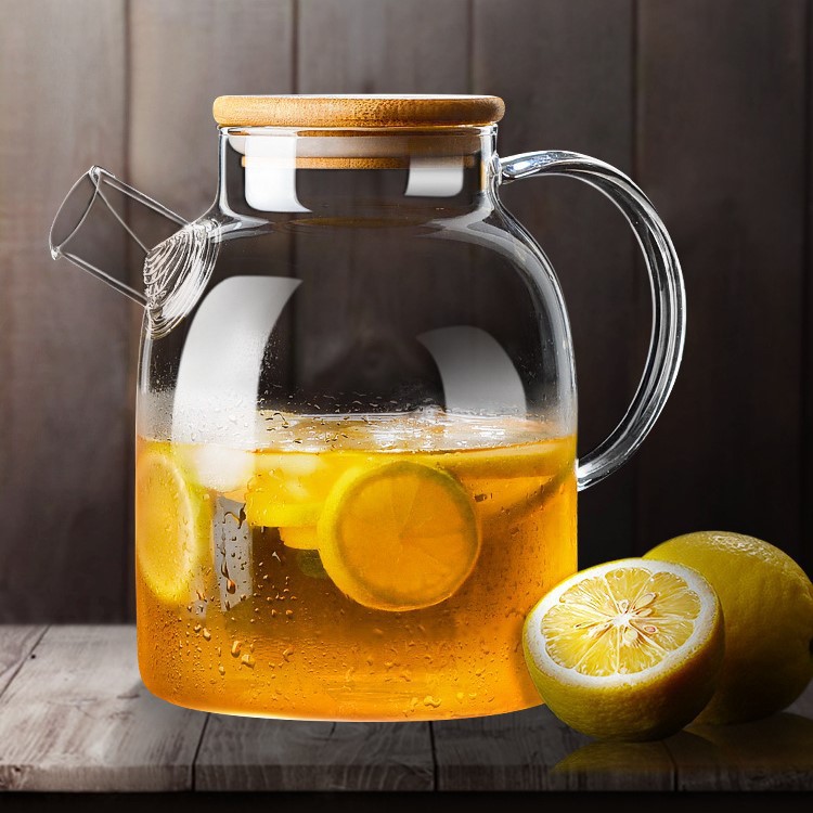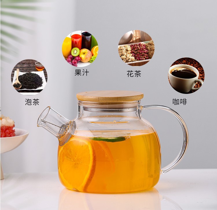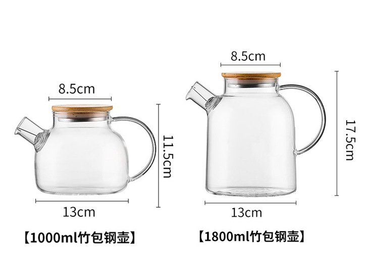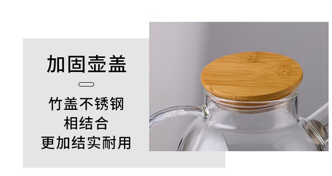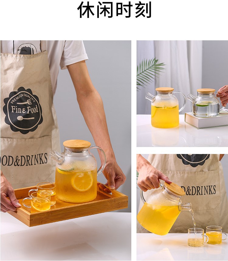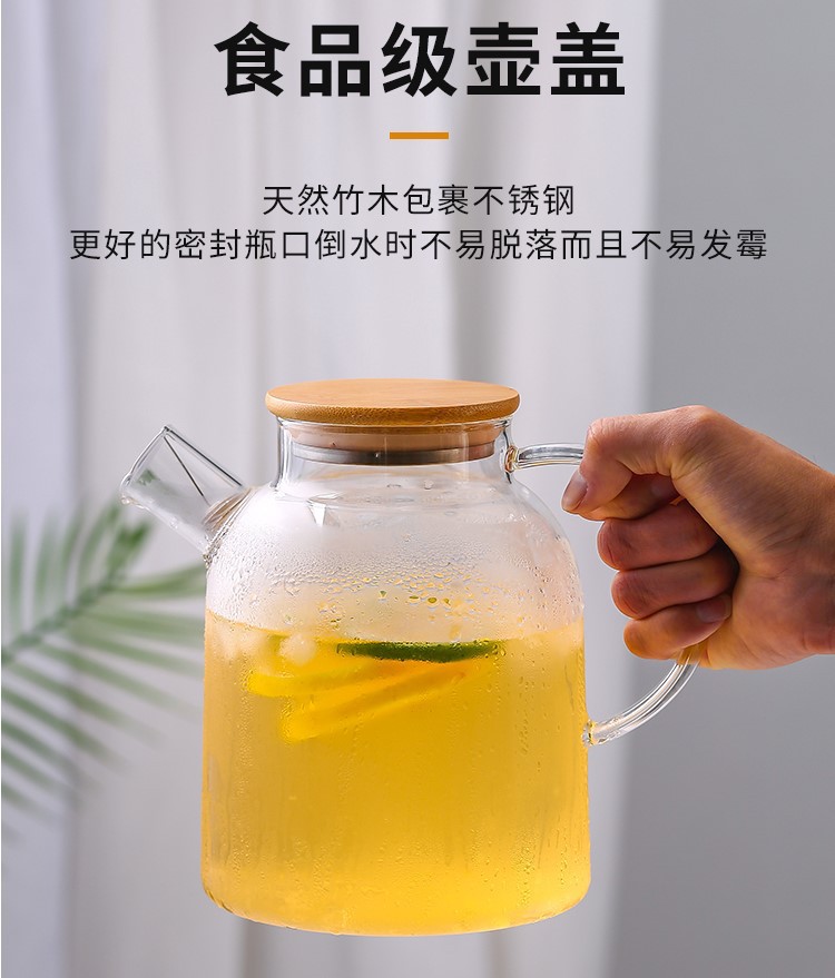 大容量玻璃冷水壶 竹盖玻璃冷水壶家用花茶壶 茶具红茶果茶凉水壶