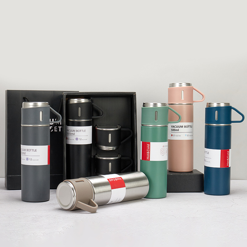 304不锈钢保温杯一杯三盖礼盒装全钢子弹头套装礼盒商务礼品水杯