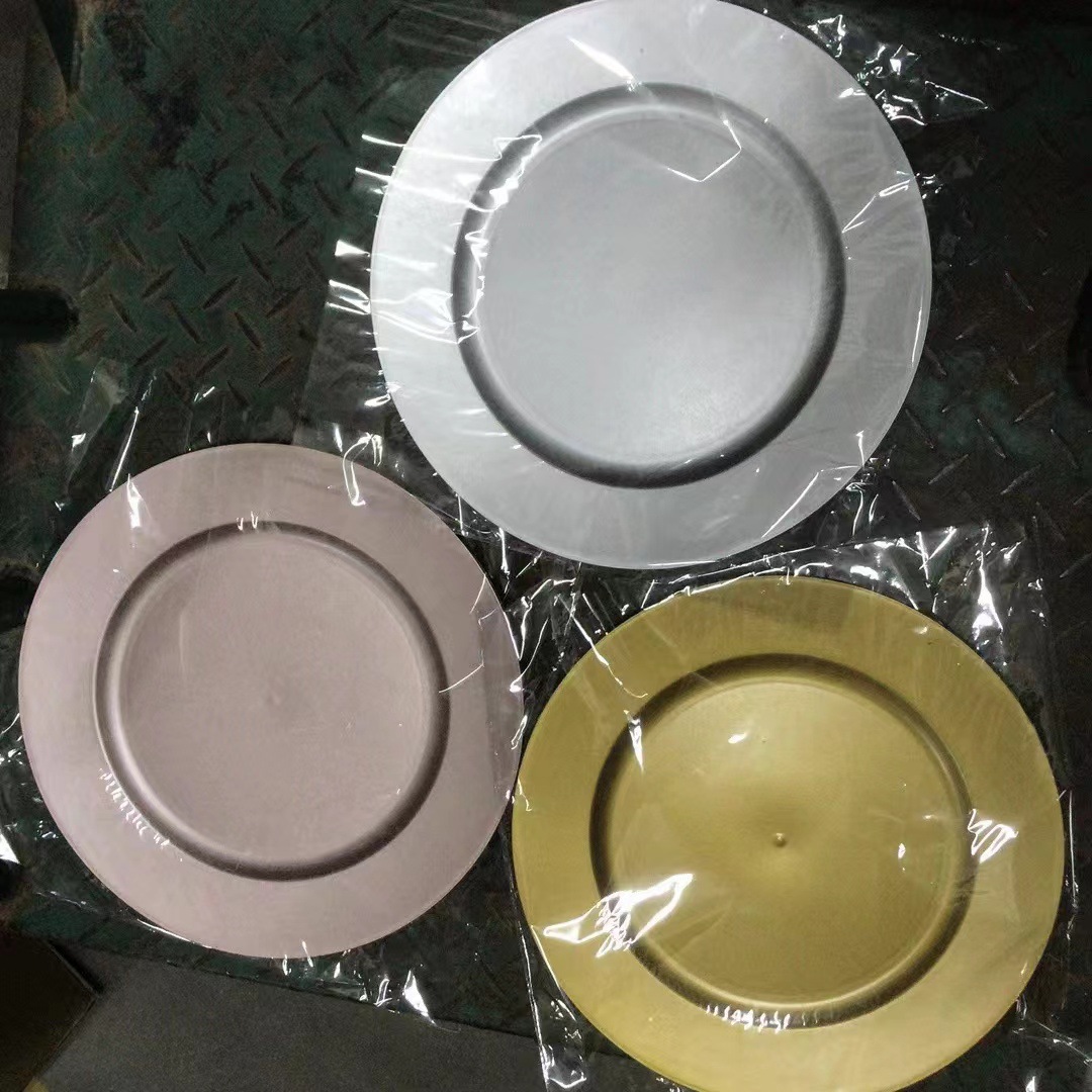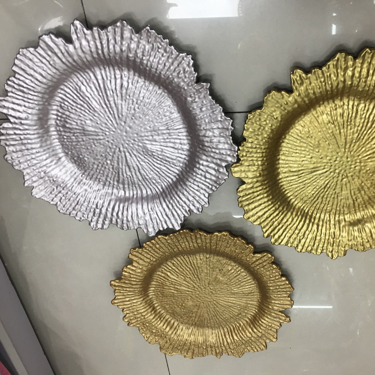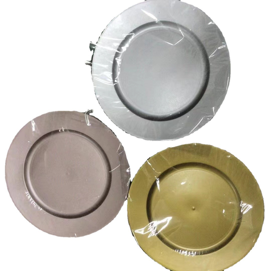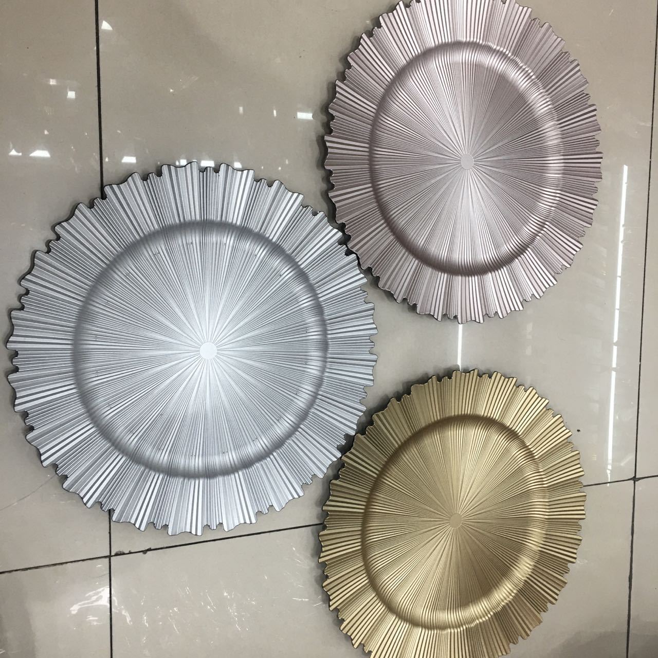 外贸喷漆金边婚礼酒店派对电镀工艺装饰塑料不规则主盘chagerplat