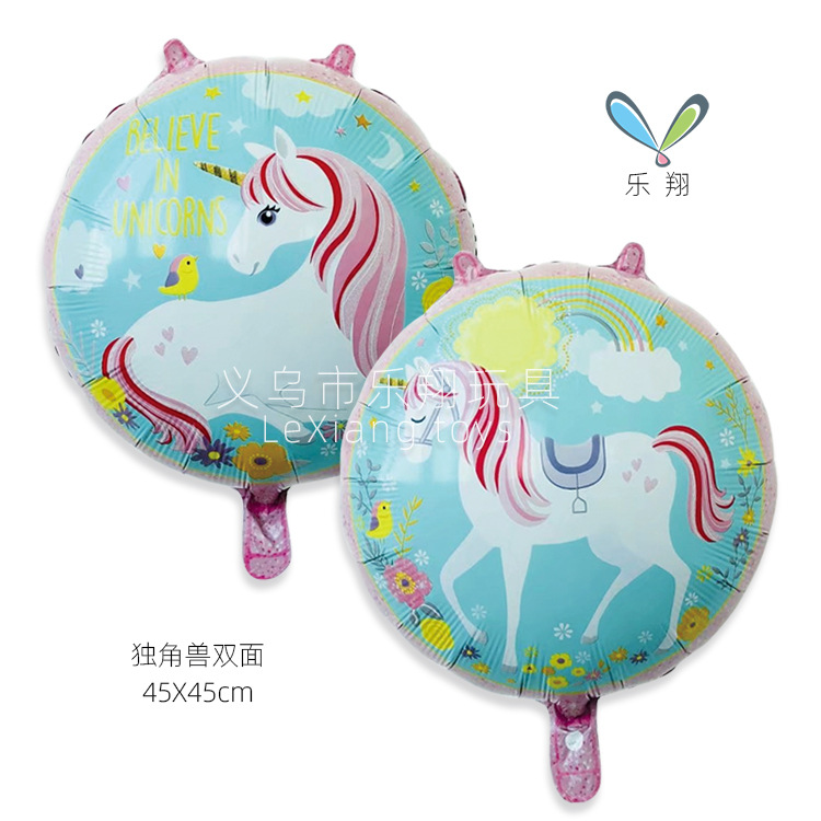 18寸圆球独角兽 火烈鸟小马宝莉铝膜气球 派对宴会独角兽主题装饰