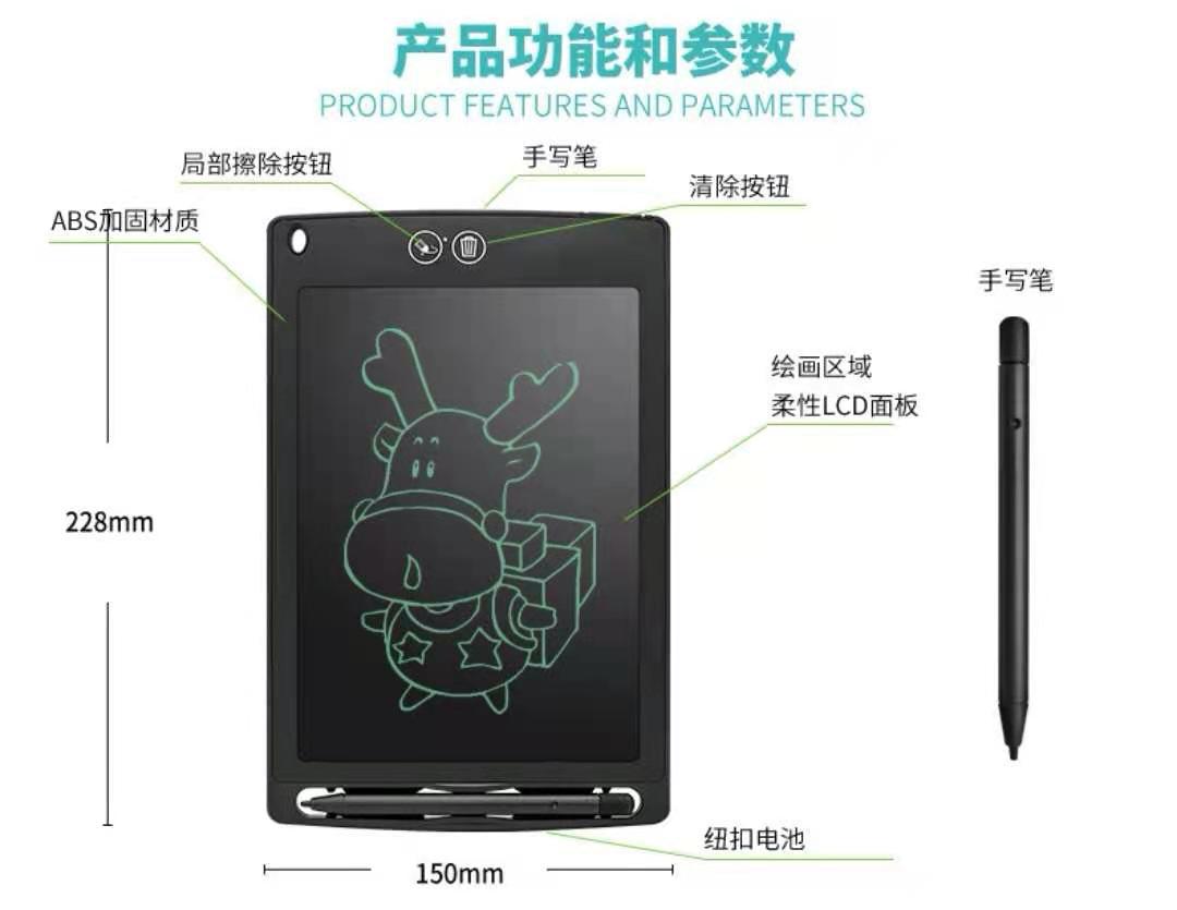 弘扬德8.5寸局部擦写 可涂改 LCD光能粗笔记写字板