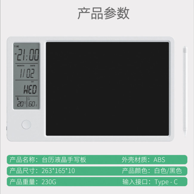 10寸充电液晶手写板光能电子写字板智能日历办公备忘录留言板