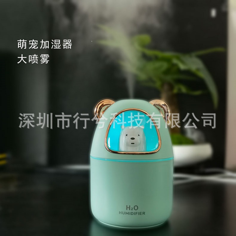 新款萌熊加湿器家用USB大容量车载雾化器 卧室桌面静音炫彩加湿器