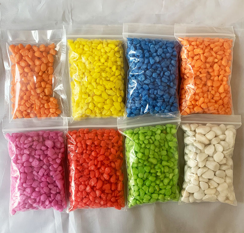 厂家批发彩色石子各种小包装五彩石克装小袋装彩色鹅卵石小彩石