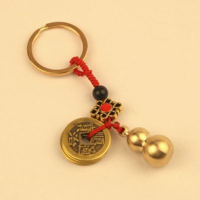 纯铜五帝钱铜钱钥匙扣汽车挂件铜钱仿古币葫芦钥匙扣