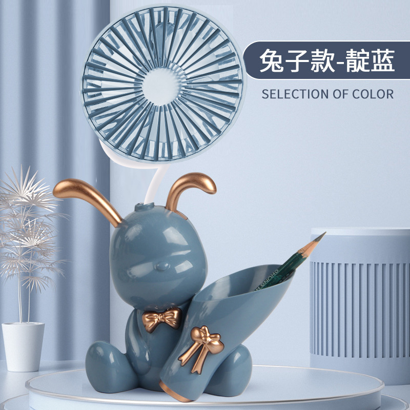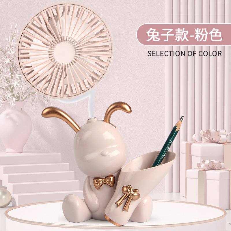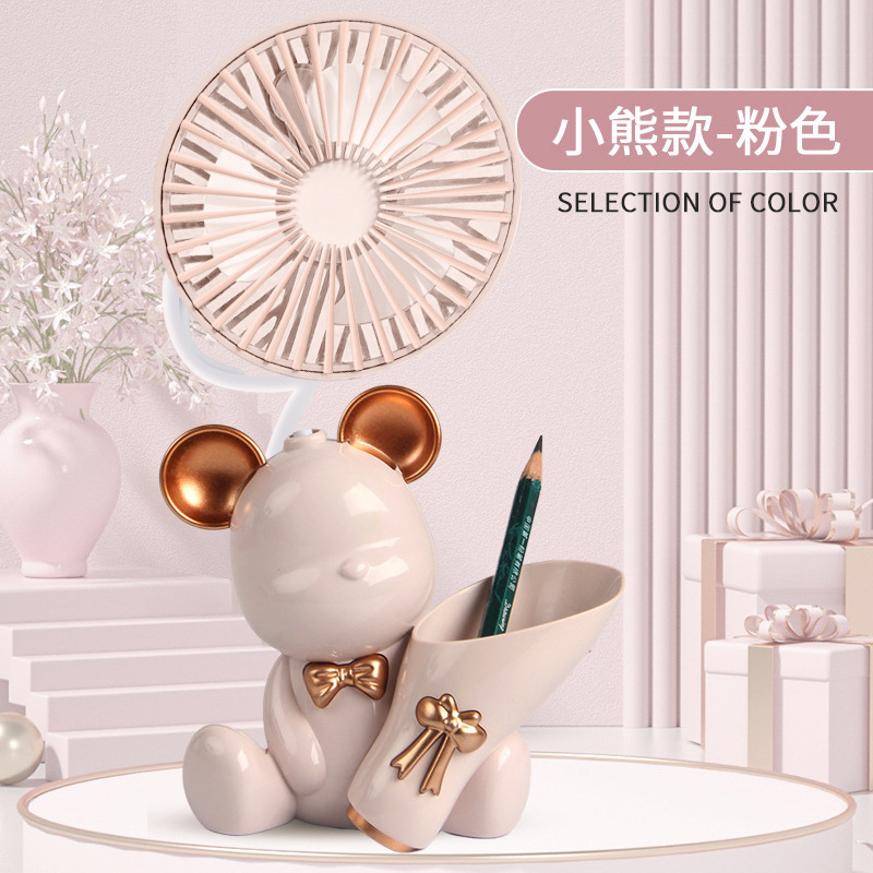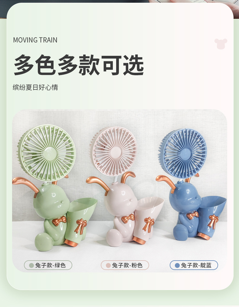 创意卡通兔子萌熊台式铅笔削笔筒风扇 学生儿童桌面usb充电风扇