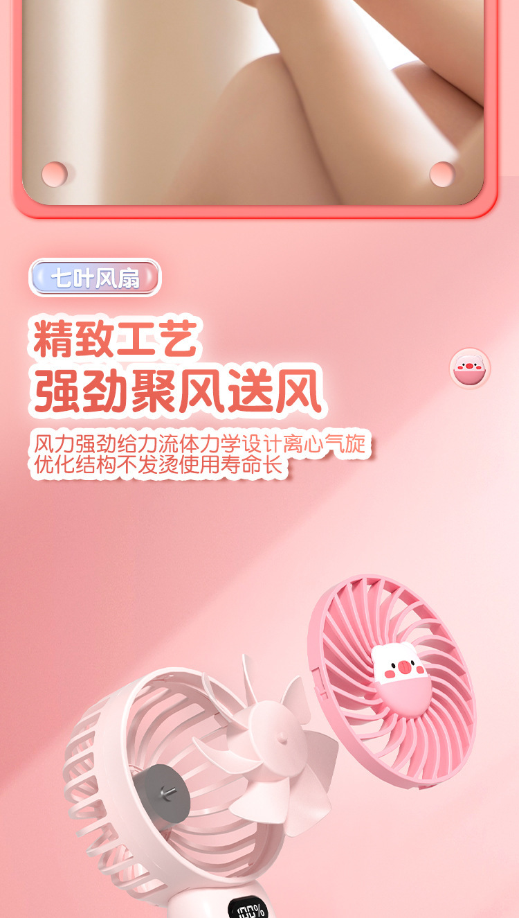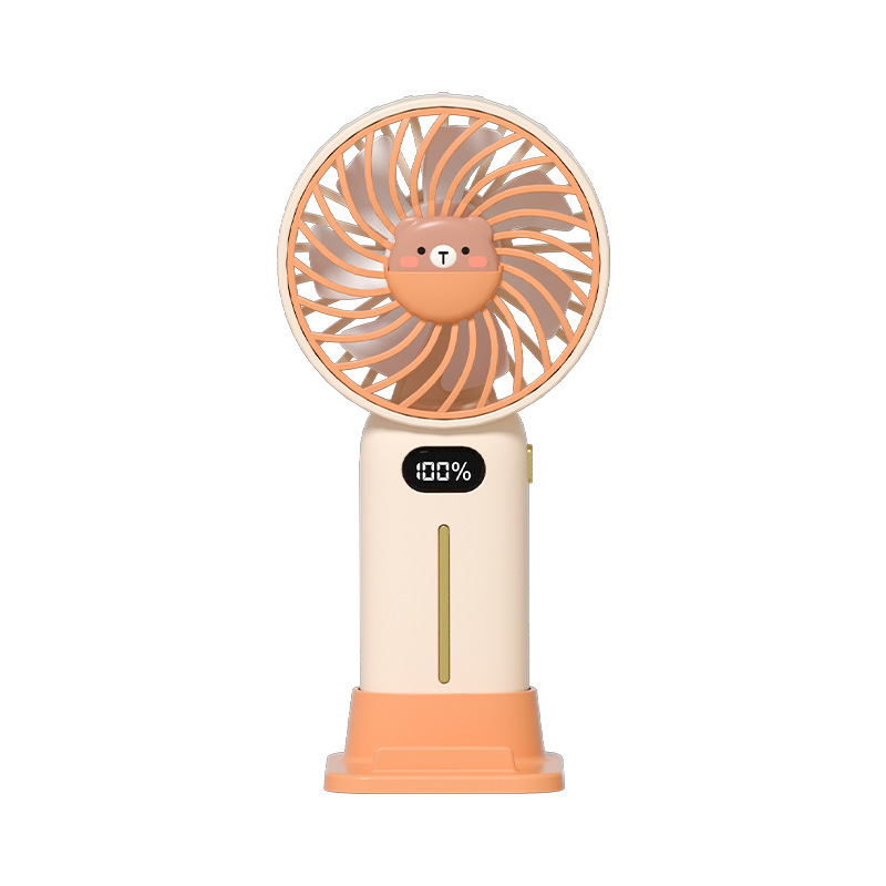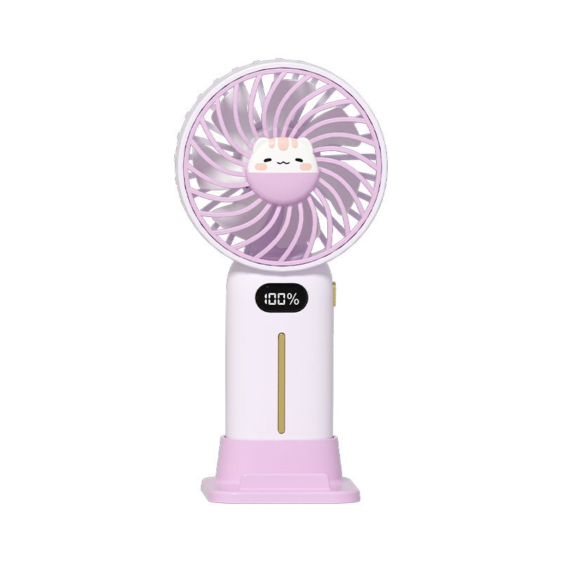 新款数显手持电风扇 迷你卡通手机支架小风扇户外便携USB充电风扇