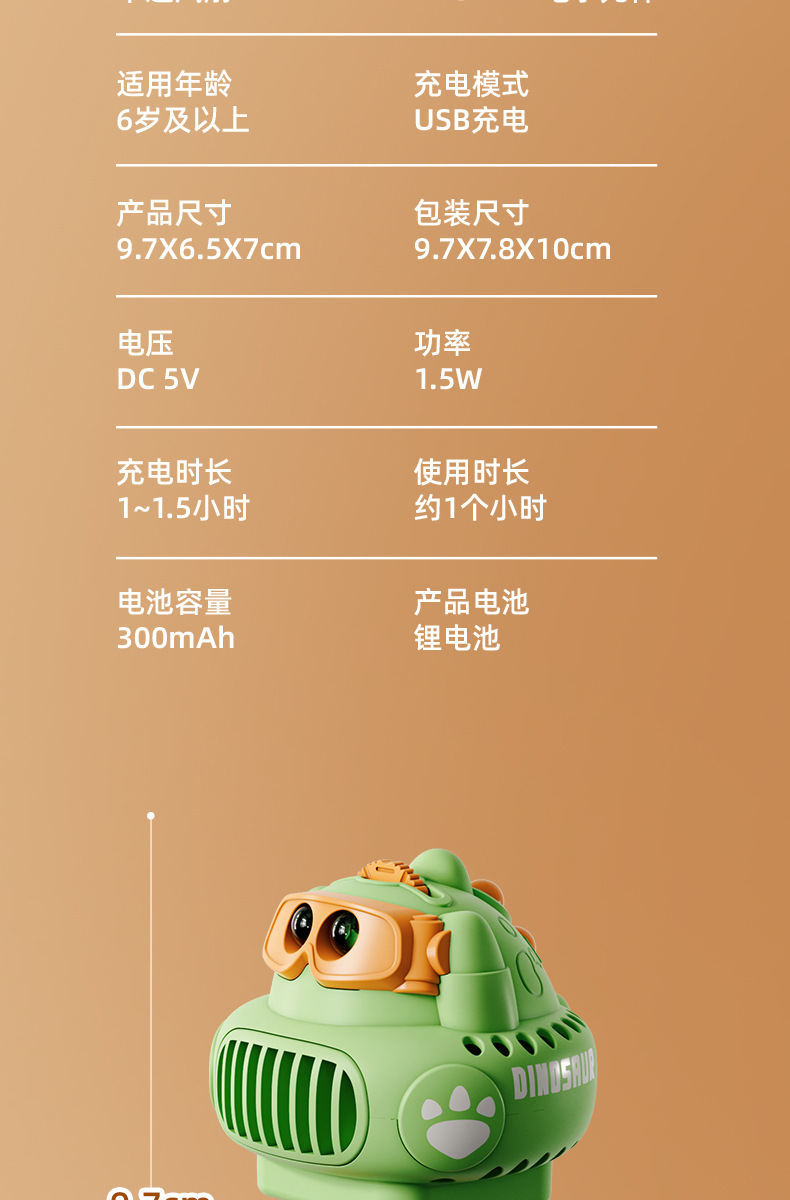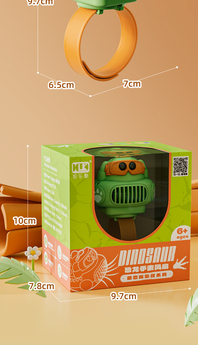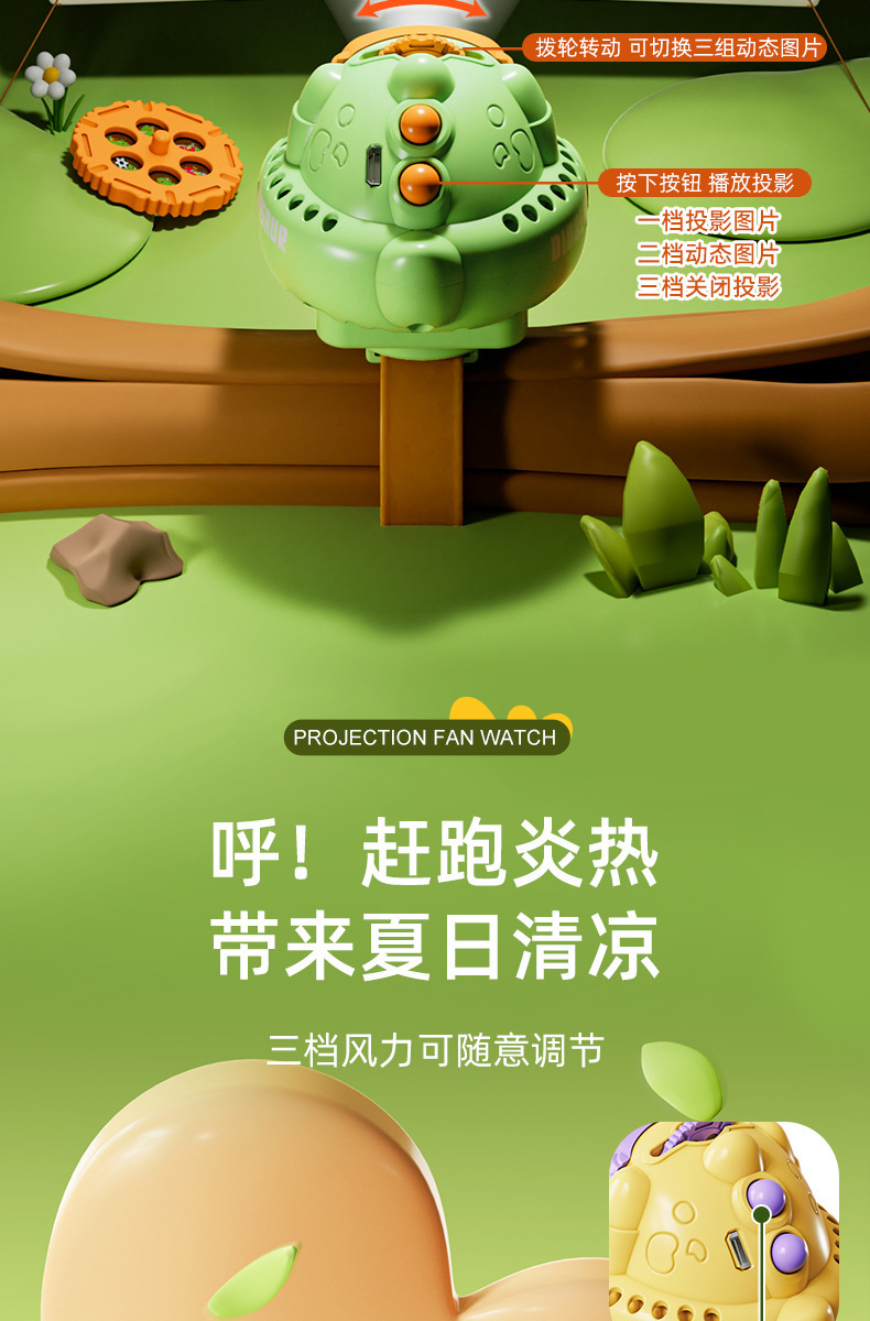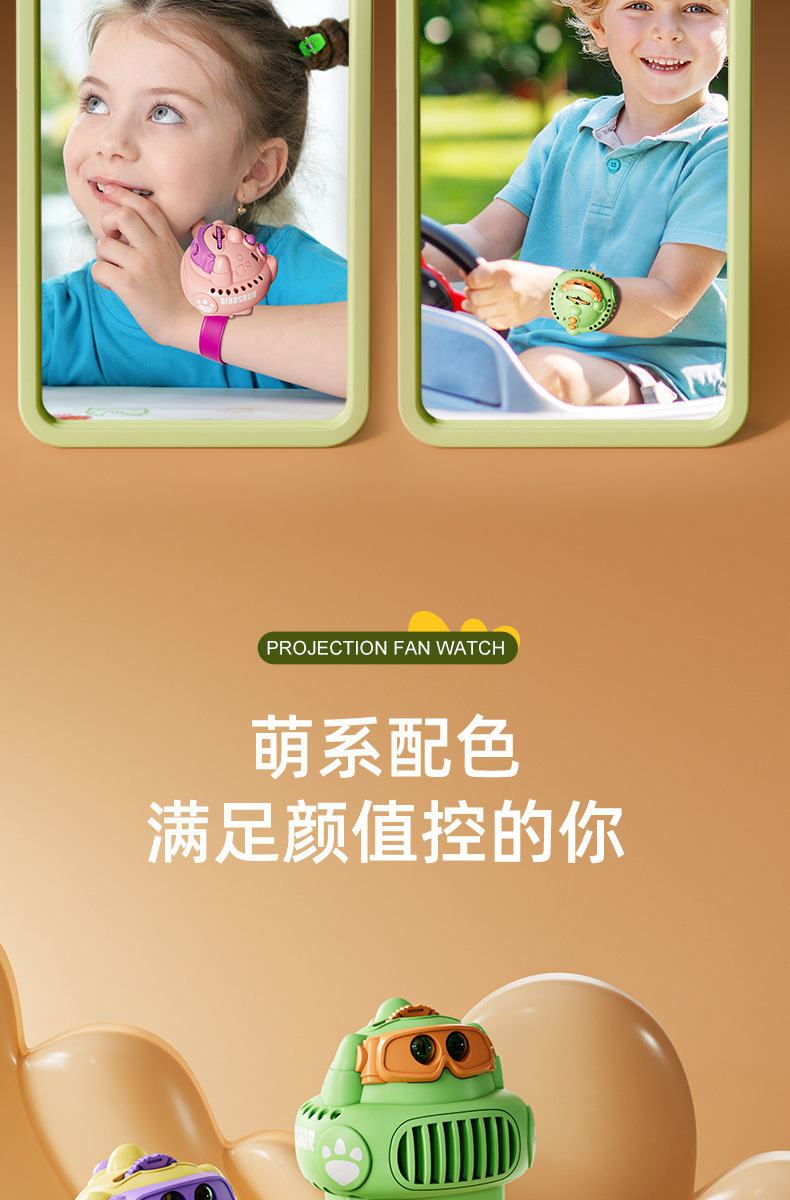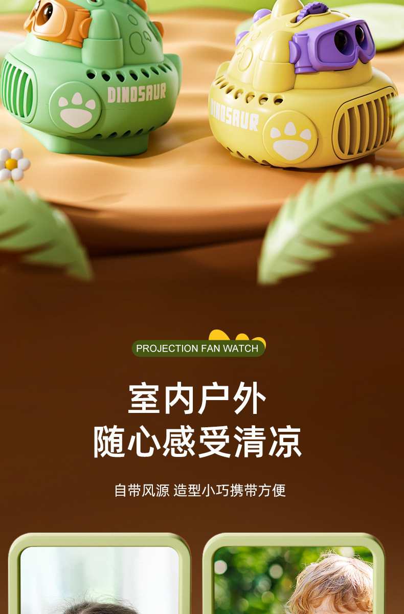 新款恐龙投影手表风扇 儿童学生礼物星空投影夜灯USB手腕无叶风扇