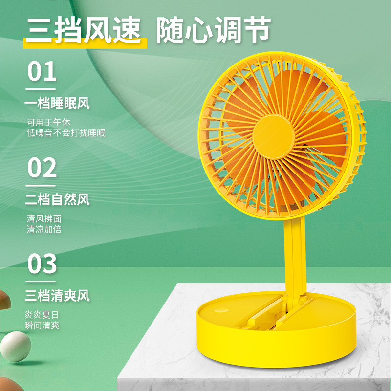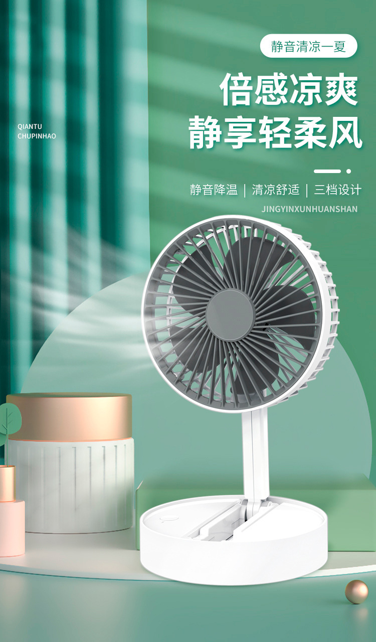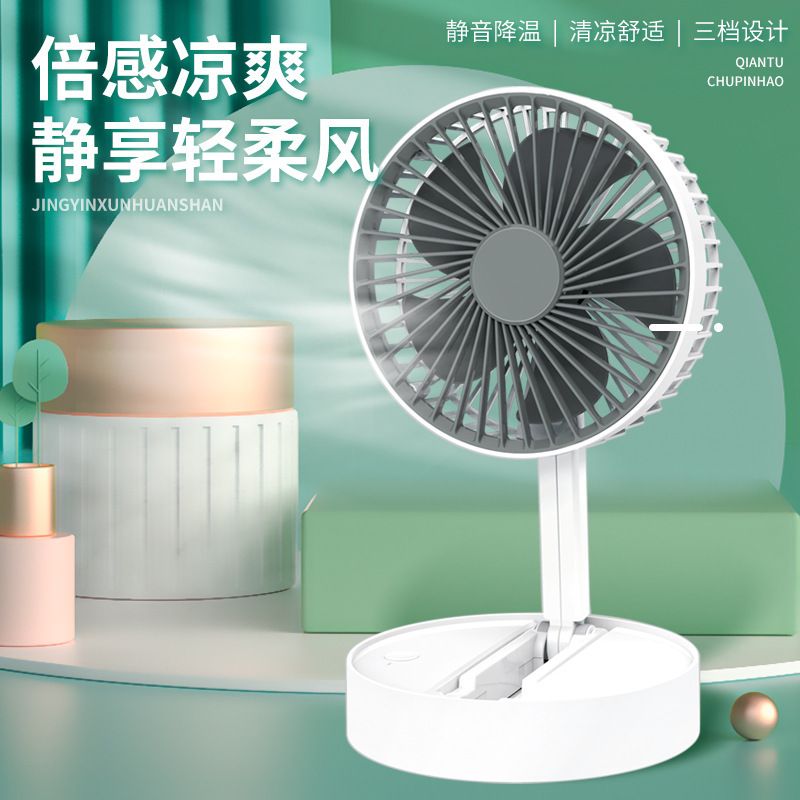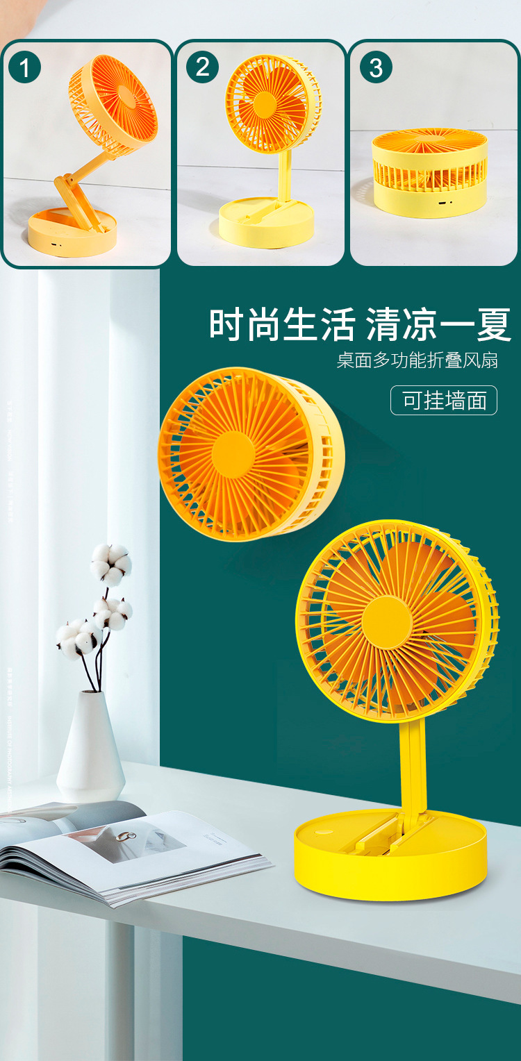 新款折叠伸缩USB充电扇 挂壁户外露营办公床头桌面多用便携小风扇