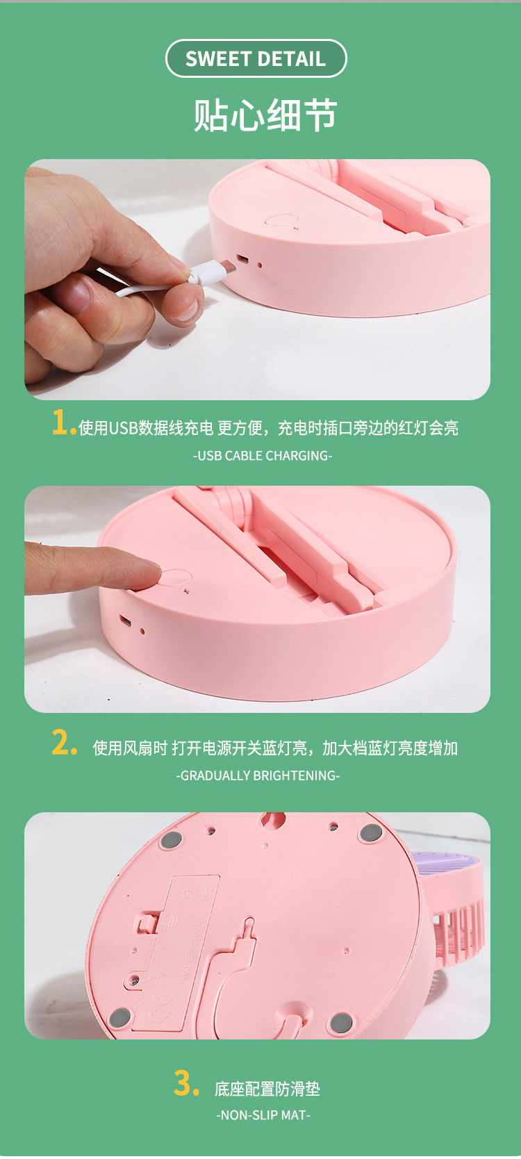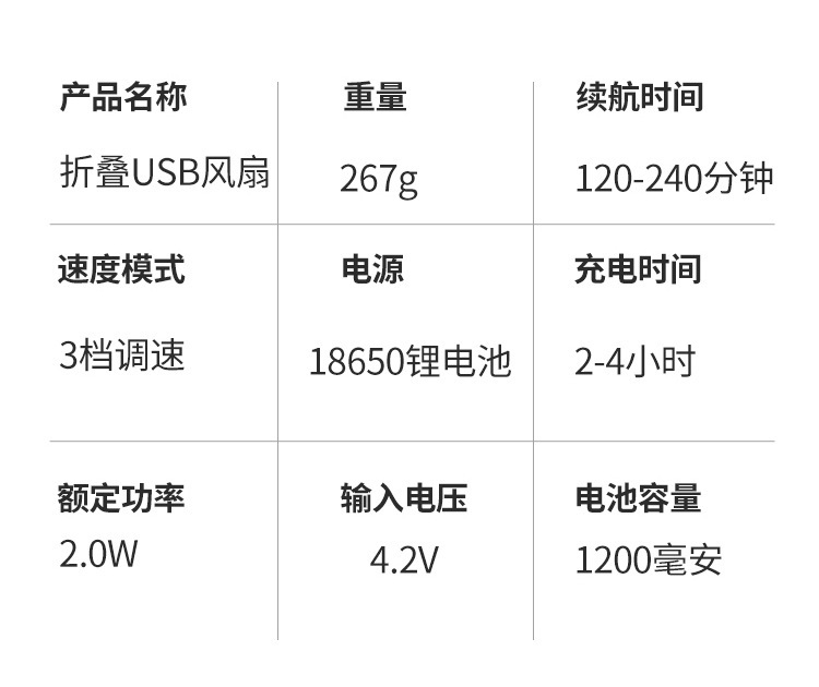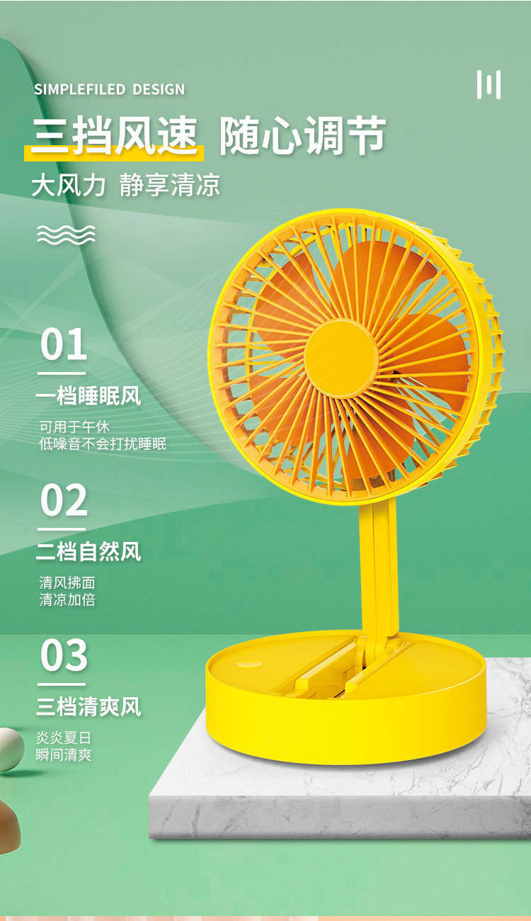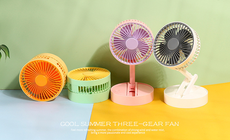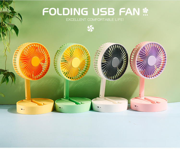 新款折叠伸缩USB充电扇 挂壁户外露营办公床头桌面多用便携小风扇