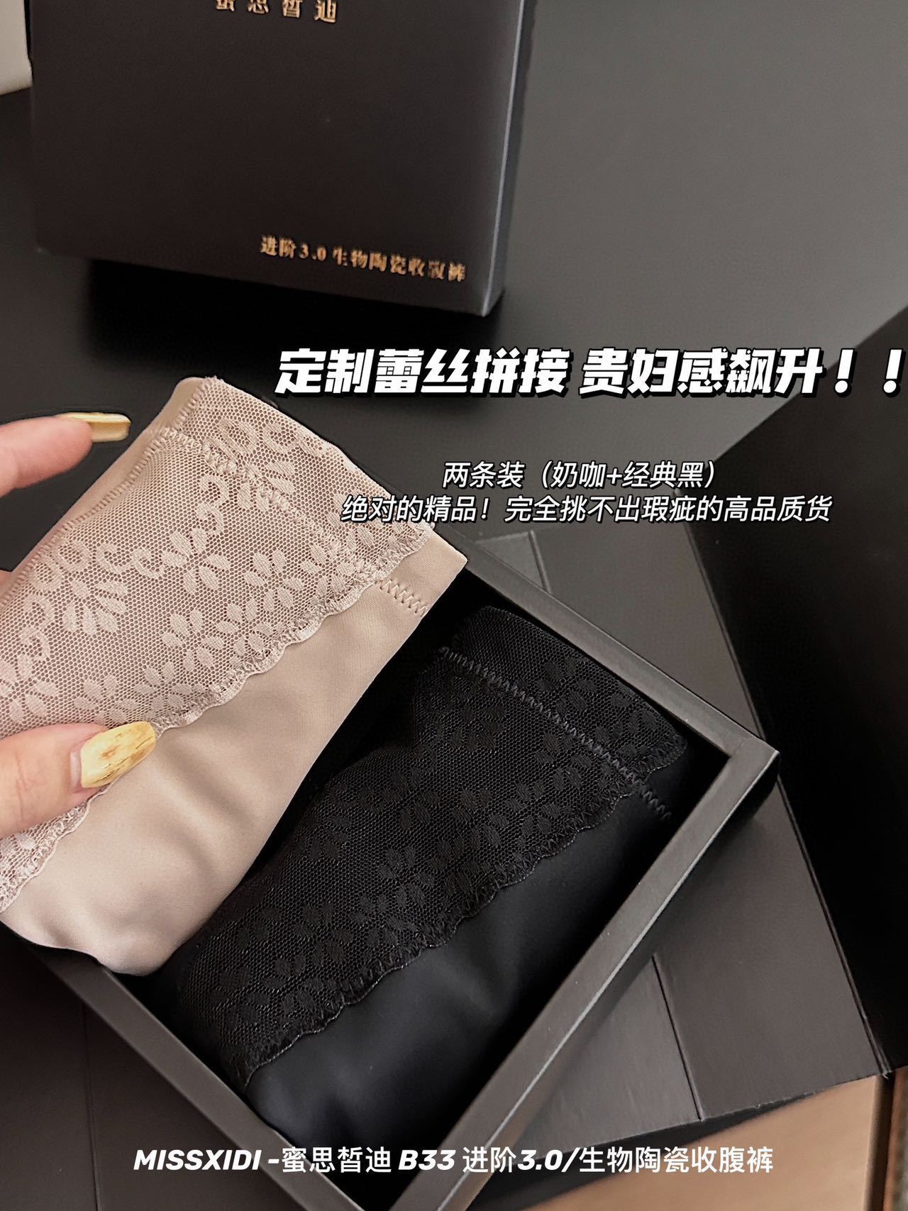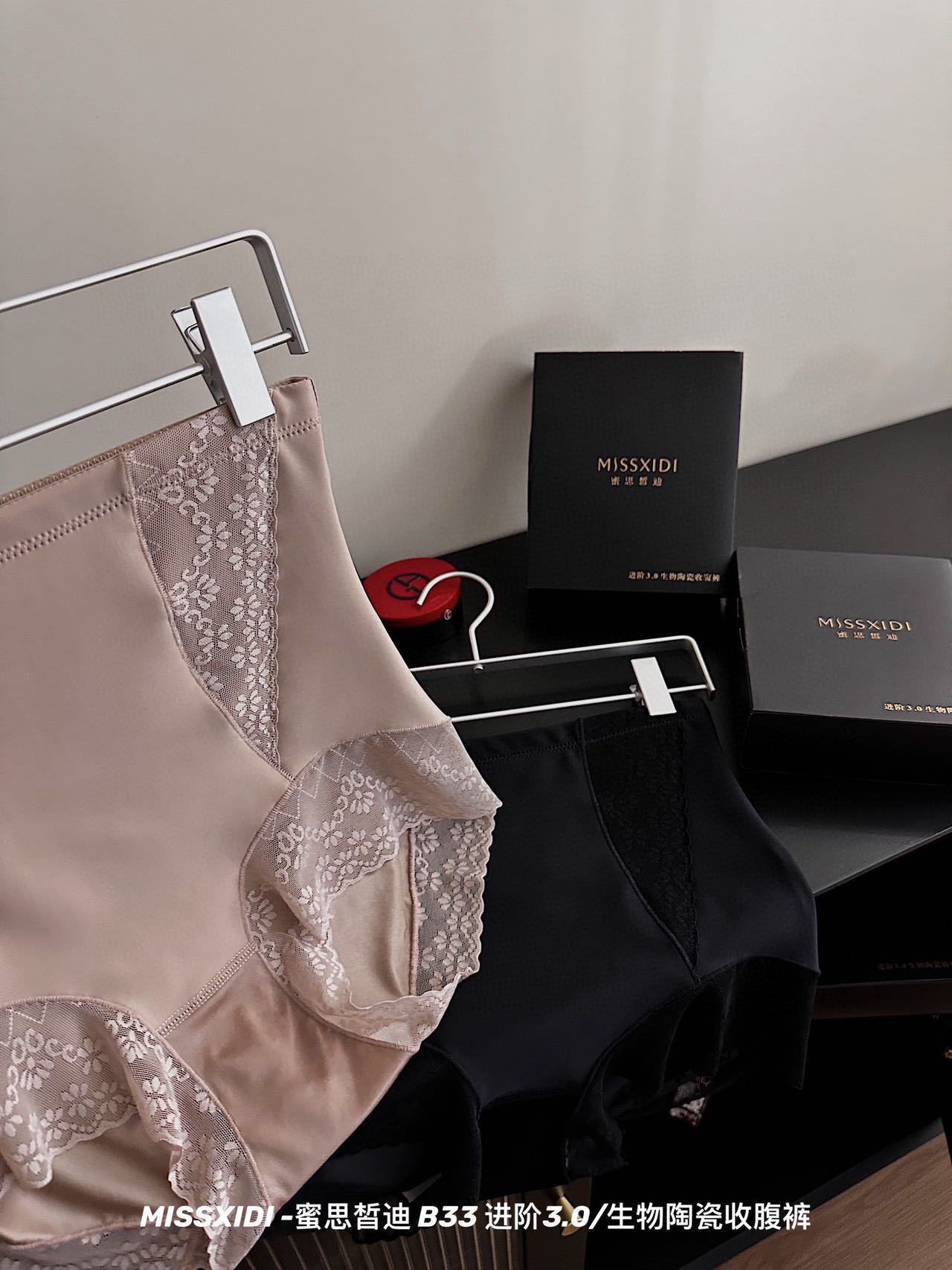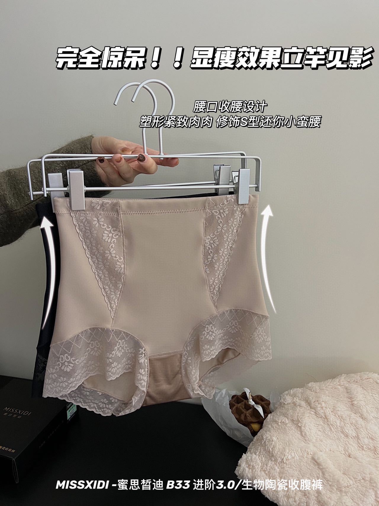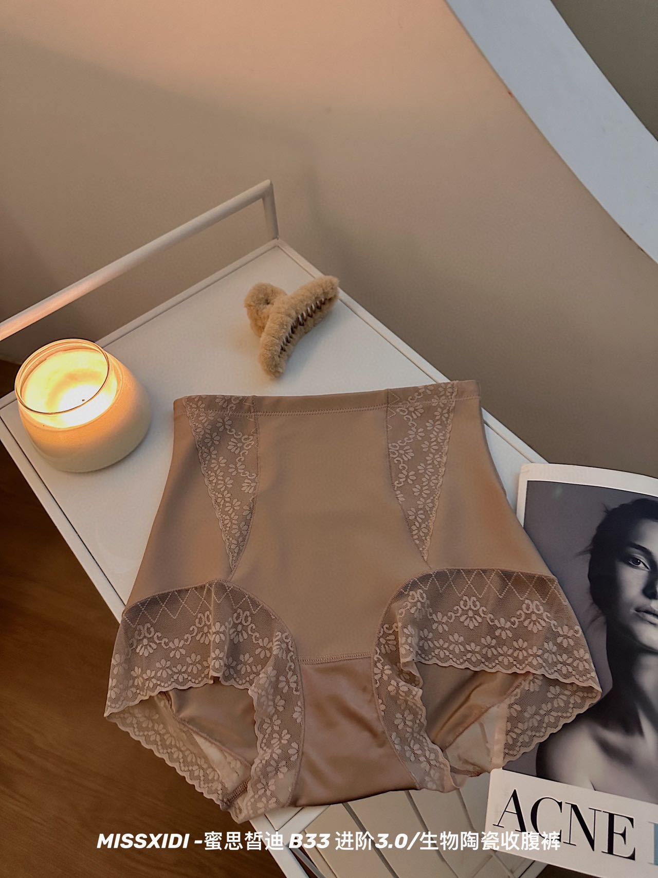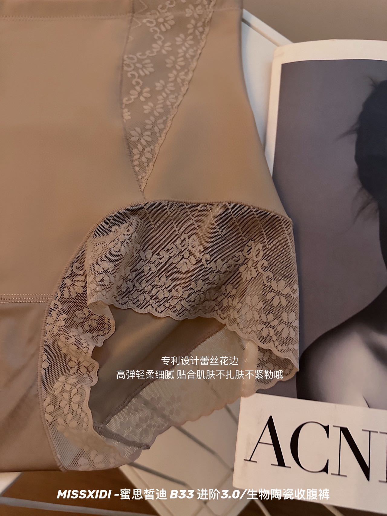 微塑美体收腹裤轻奢缎面蕾丝高腰收腹提臀产后瘦肚子三角裤女