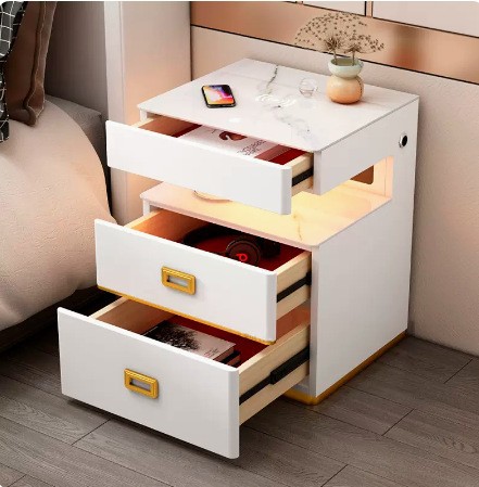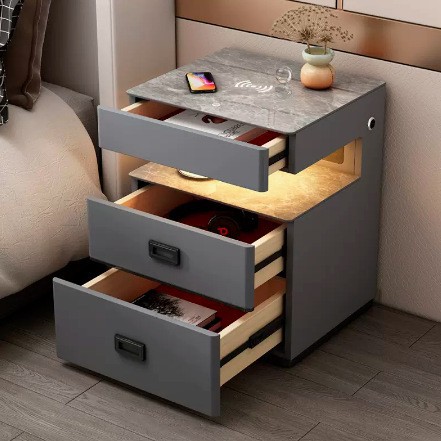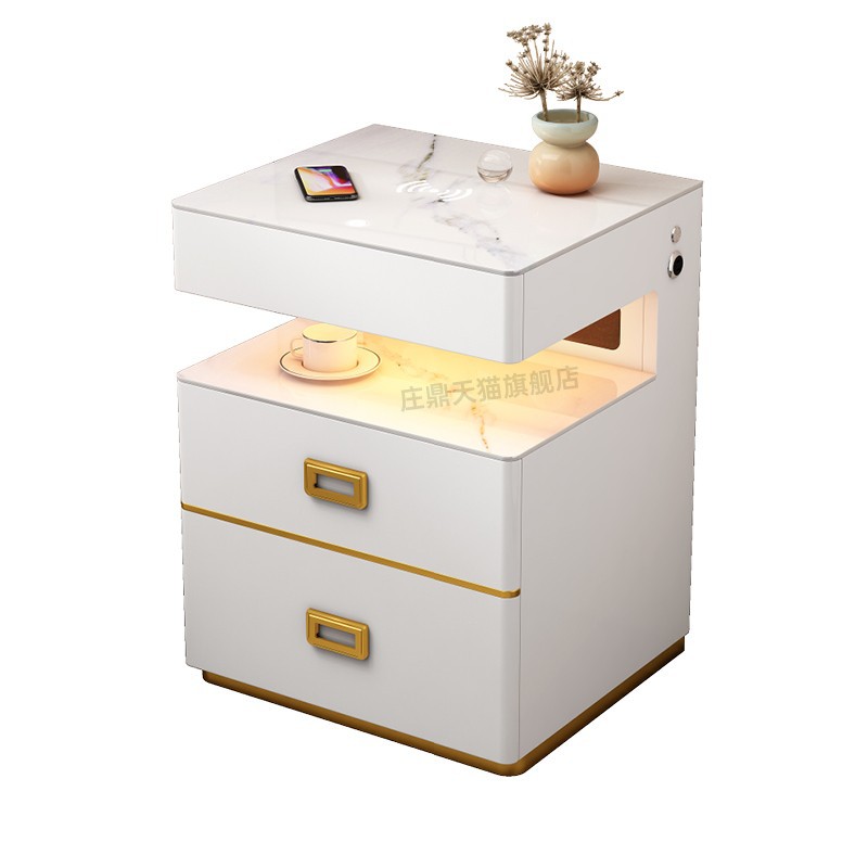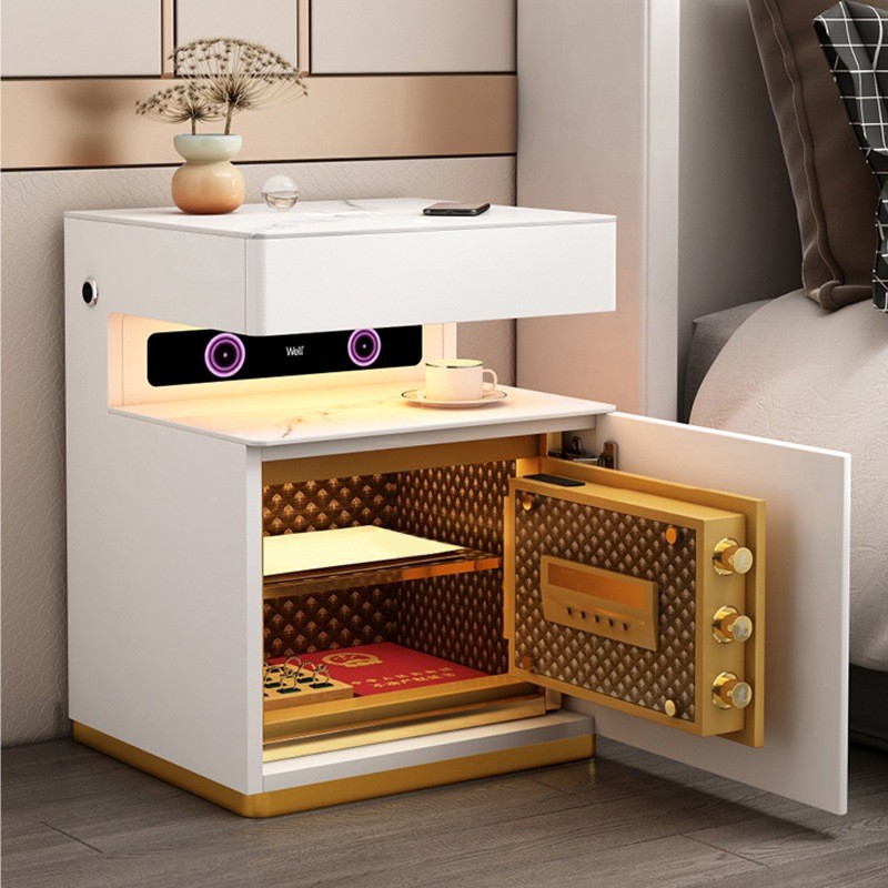 智能床头柜多功能音箱带指纹锁隐形保险柜床边柜无线充电带灯USB